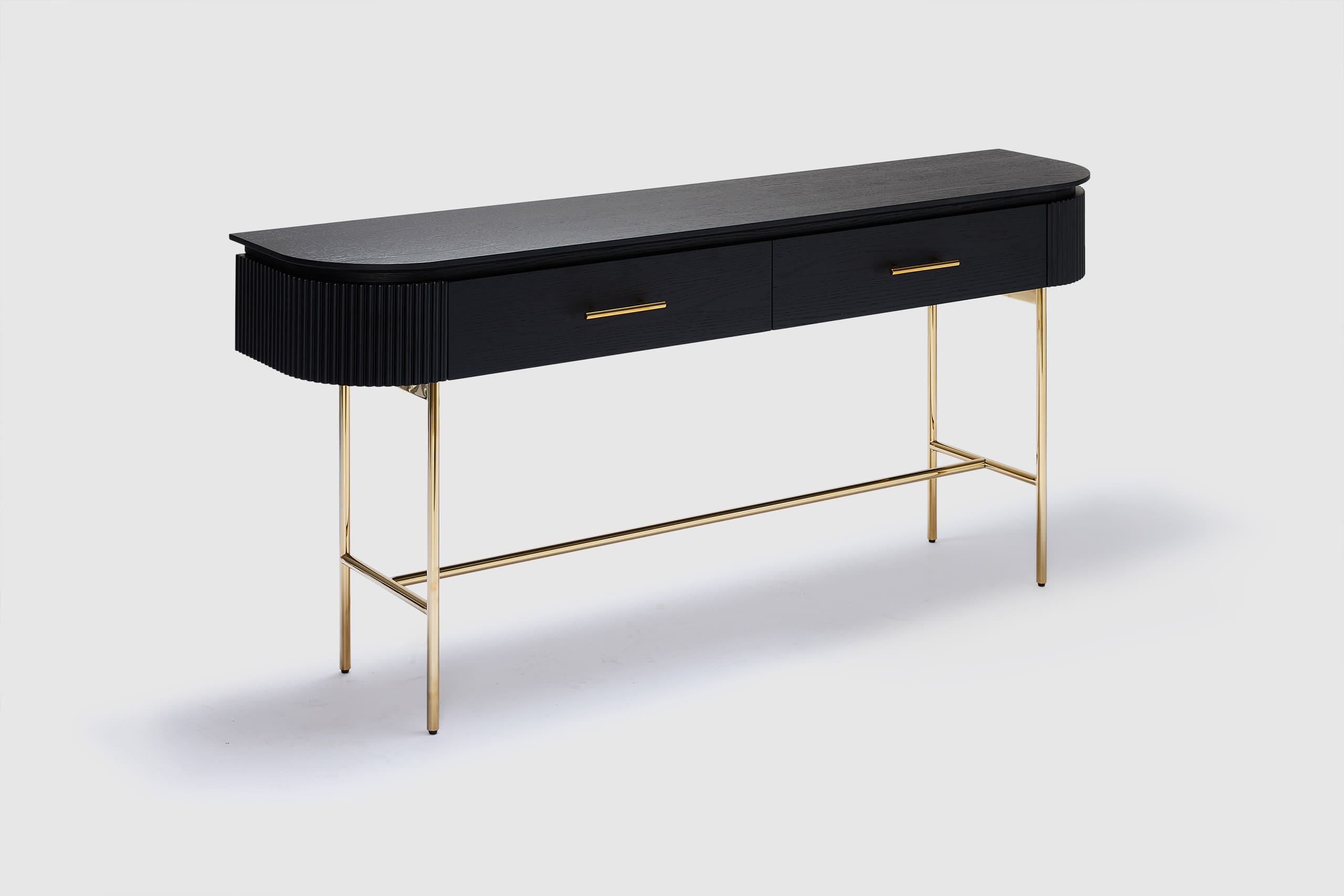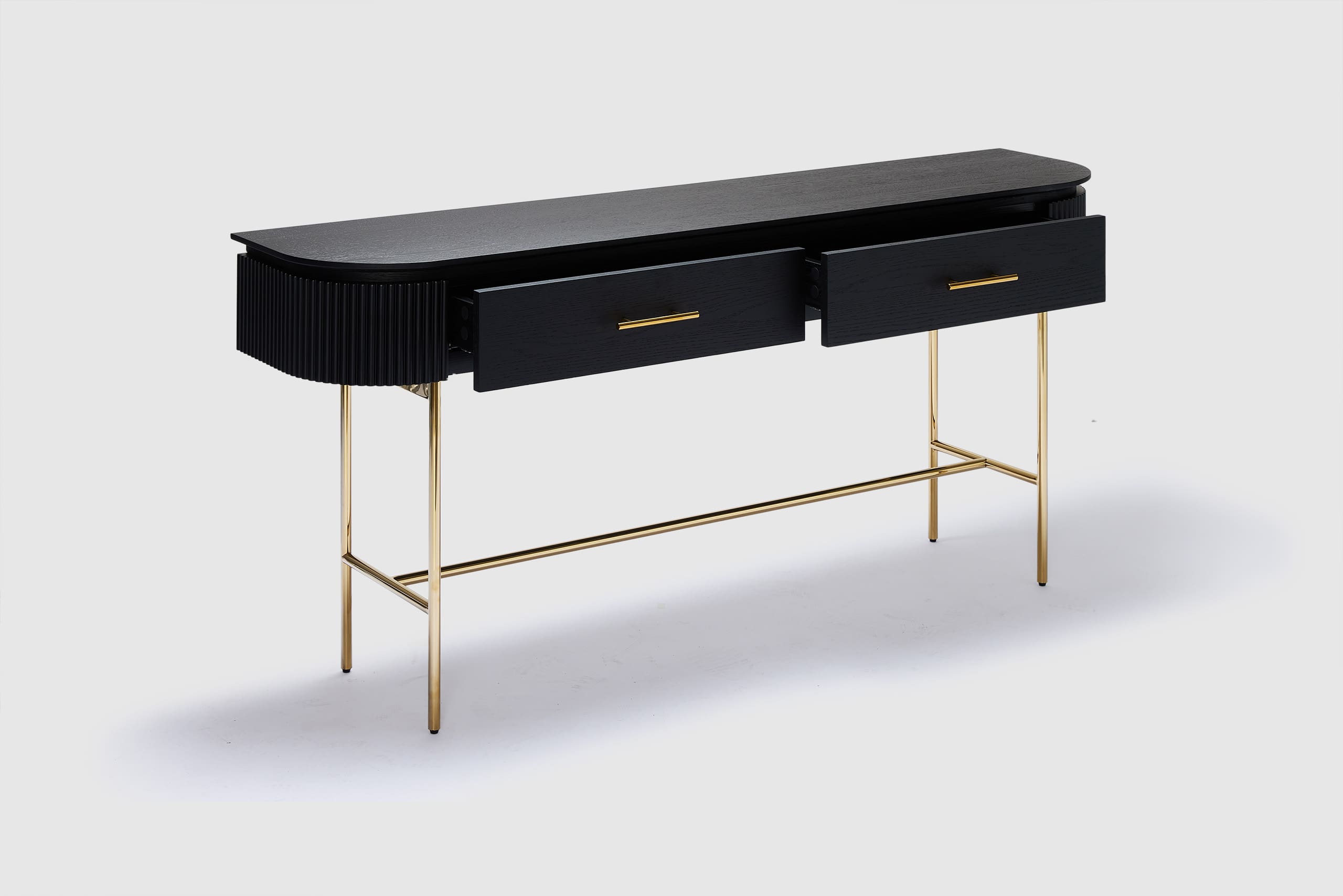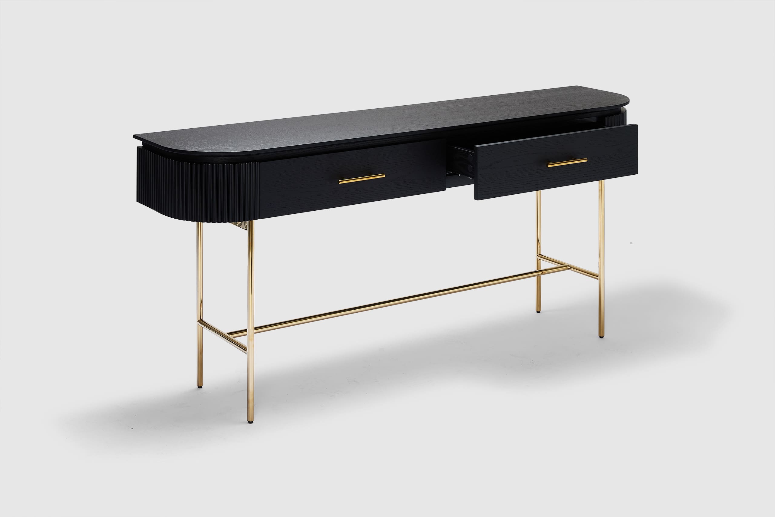 MORE CONFIGURATIONS & SIZESThe Amaretto Console was made for the modern home. Sleek, stylish and sophisticated, this console incorporates two drawers at an accessible height, providing excellent storage. The captivating blend of black and gold textures make Amaretto an ideal choice for those seeking an elegant and standout piece.