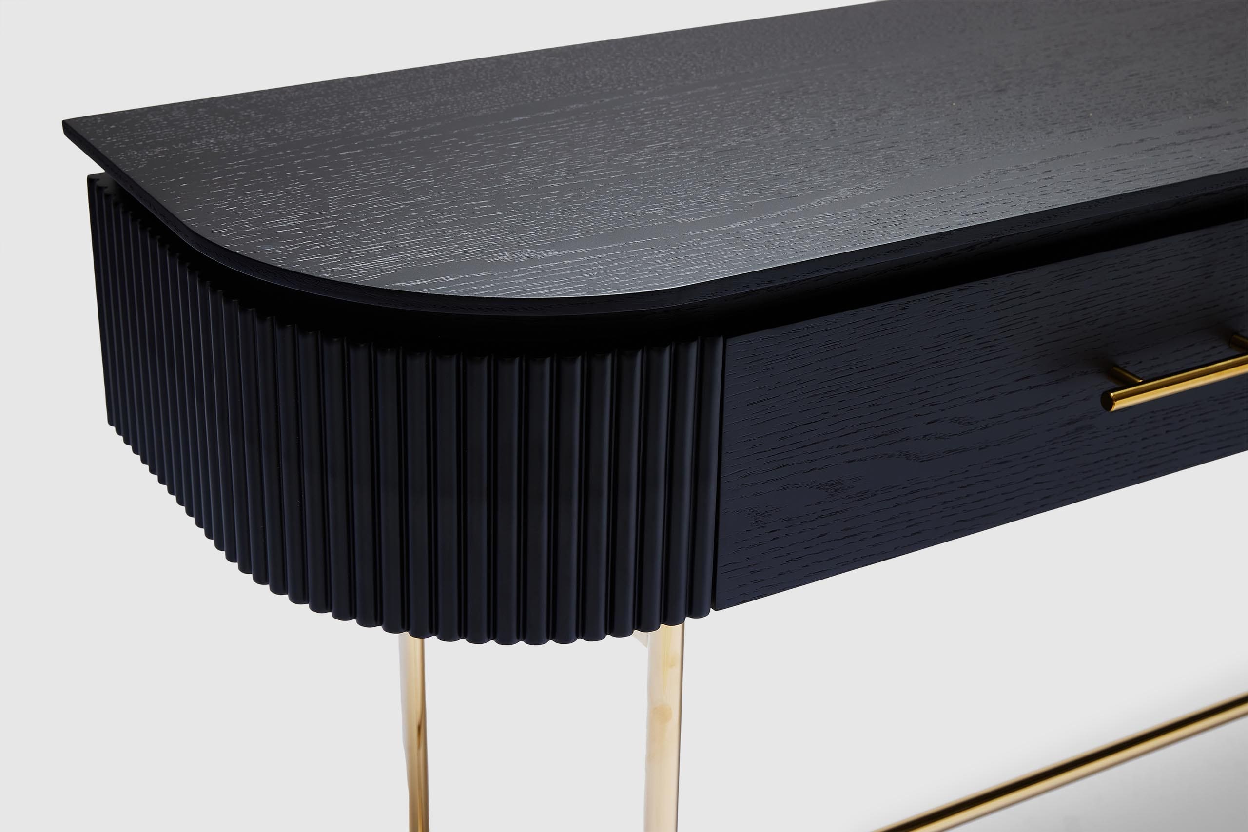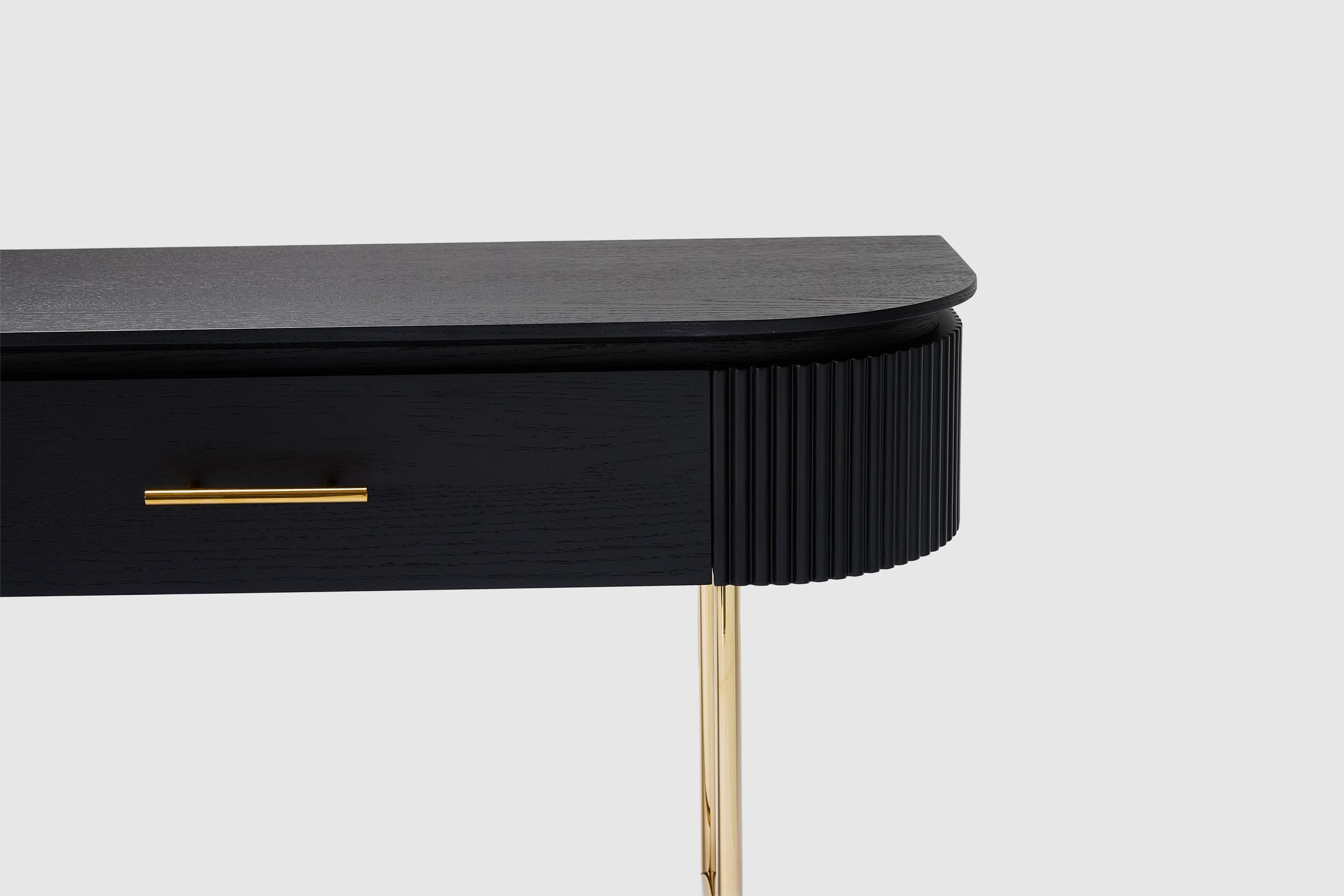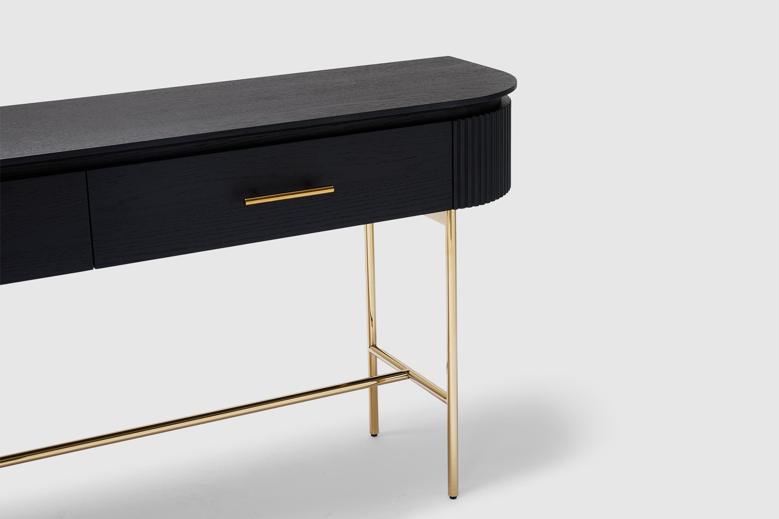 MORE CONFIGURATIONS & SIZESThe Amaretto Console was made for the modern home. Sleek, stylish and sophisticated, this console incorporates two drawers at an accessible height, providing excellent storage. The captivating blend of black and gold textures make Amaretto an ideal choice for those seeking an elegant and standout piece.