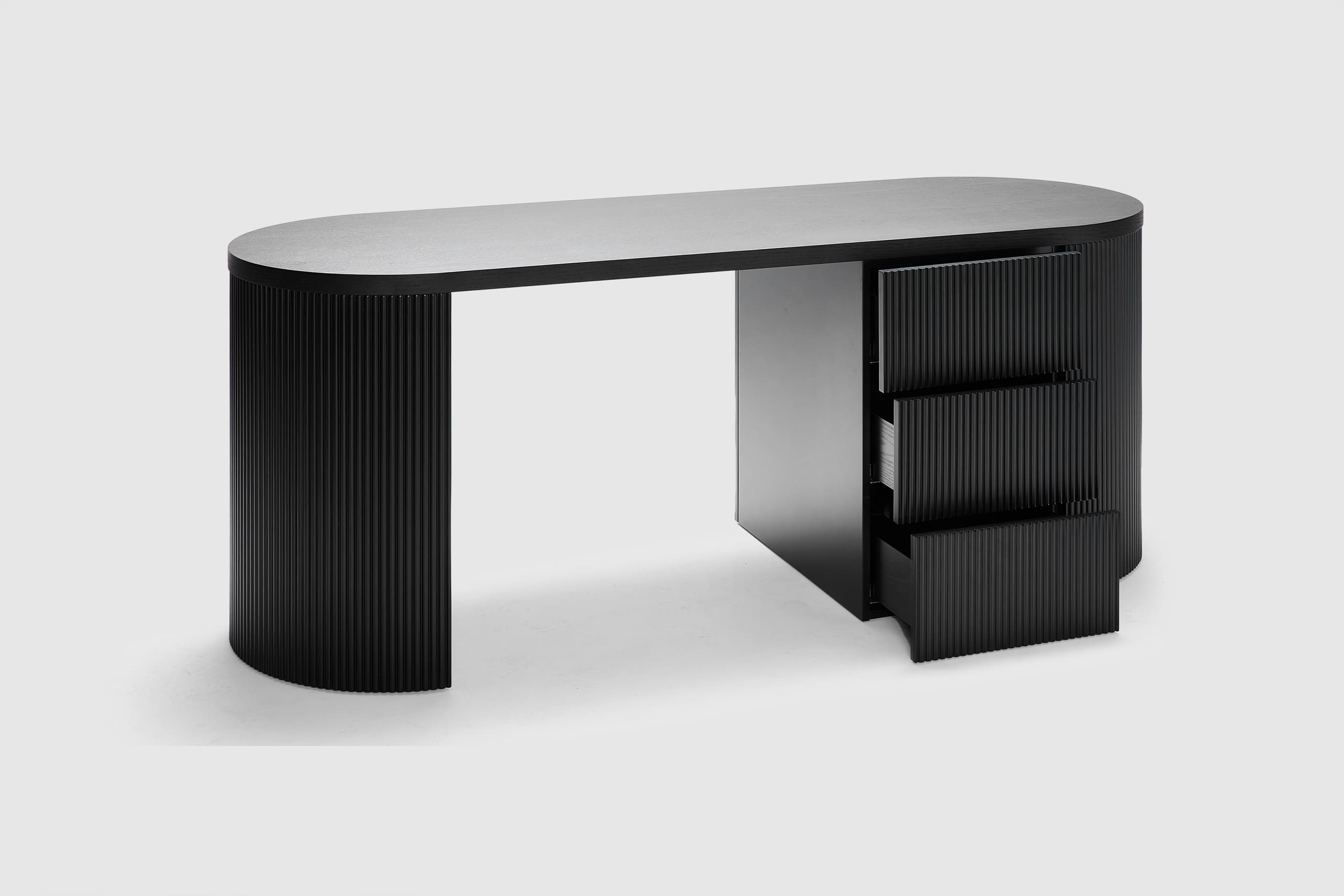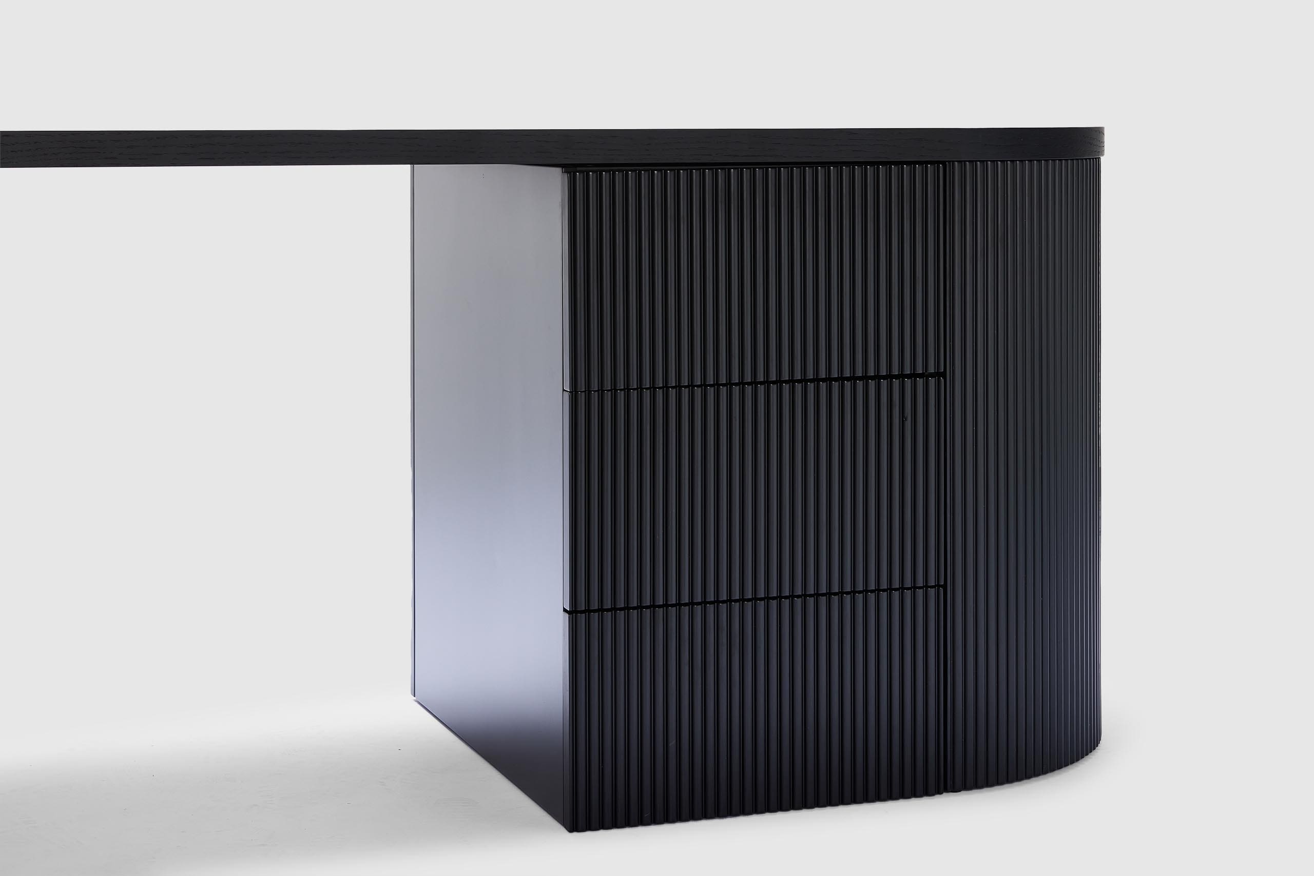 MORE CONFIGURATIONS & SIZESMade for the modern home, the Amaretto Desk is meticulously crafted with impeccable attention to detail. A right-hand facing design boasts three storage drawers, while the black oak timber finish provides an elegant and timeless appeal to your home office.