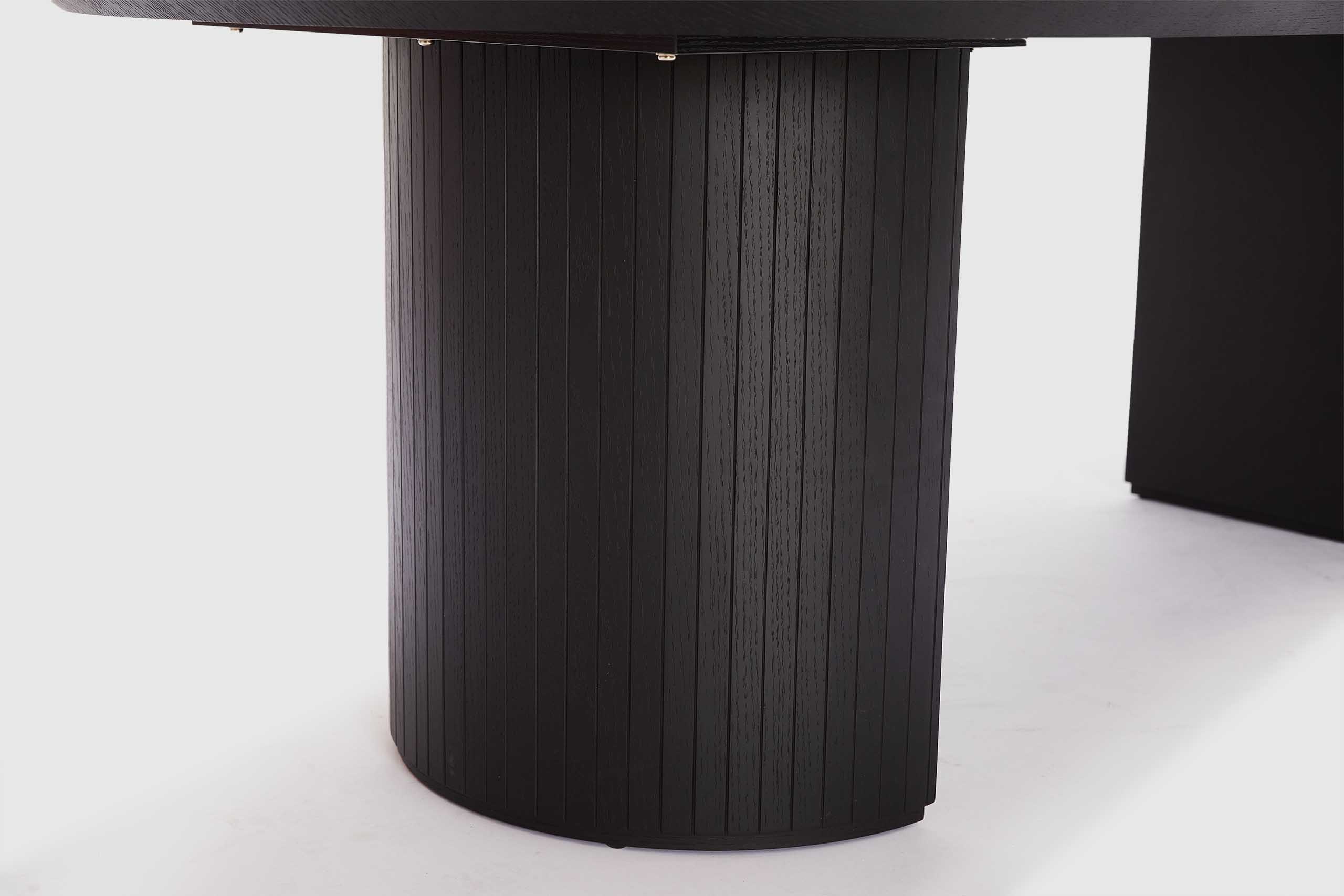Effortlessly luxurious and chic, the Amaretto dining table offers the right amount of dark oak wooden textures. Elevate your living space with the ribbed detailing on the base and the sleek and precisely curved form - Amaretto offers a simple yet grandeur solution to entertaining. Pair with the matching entertainment unit, credenza, and coffee table for the complete look.