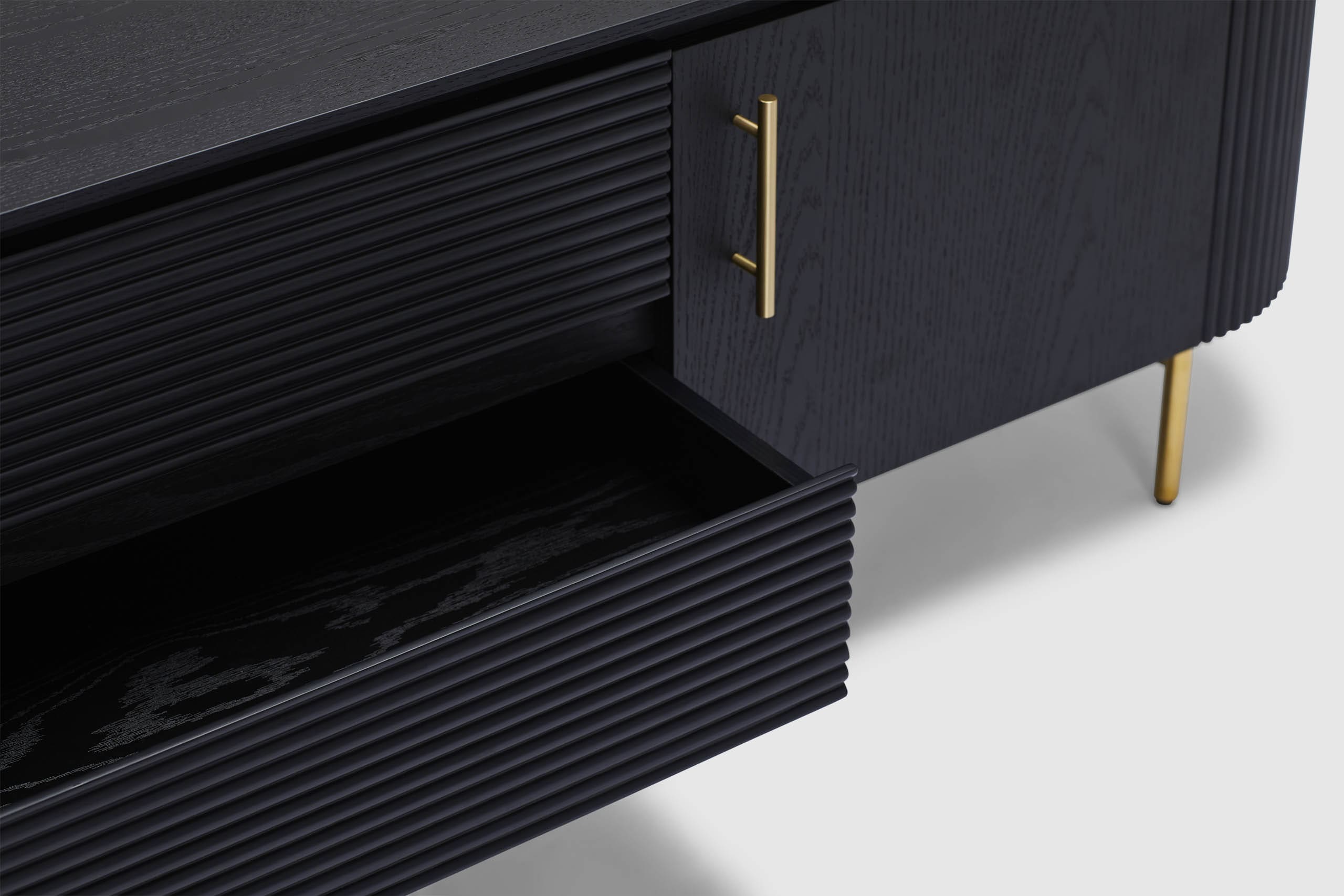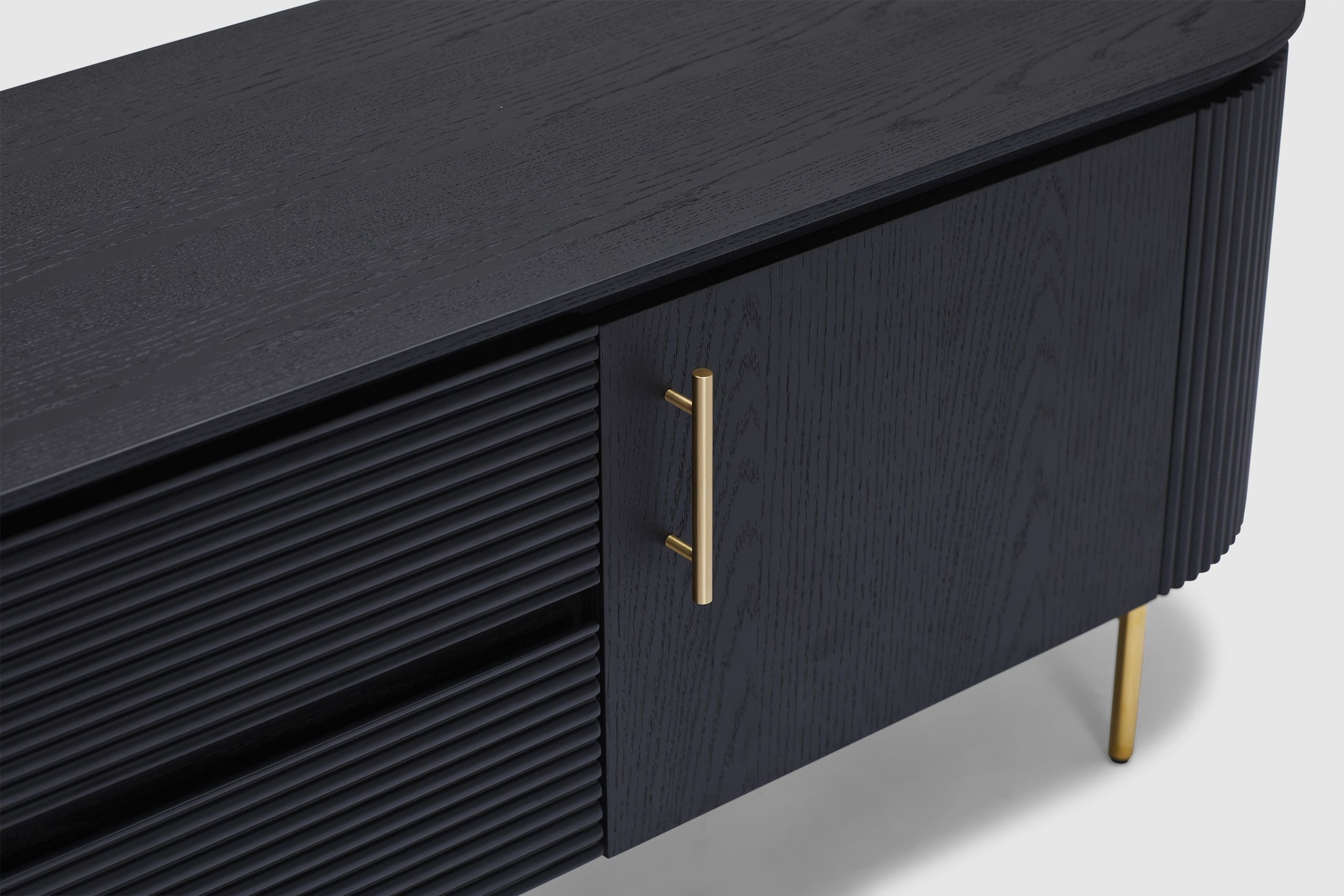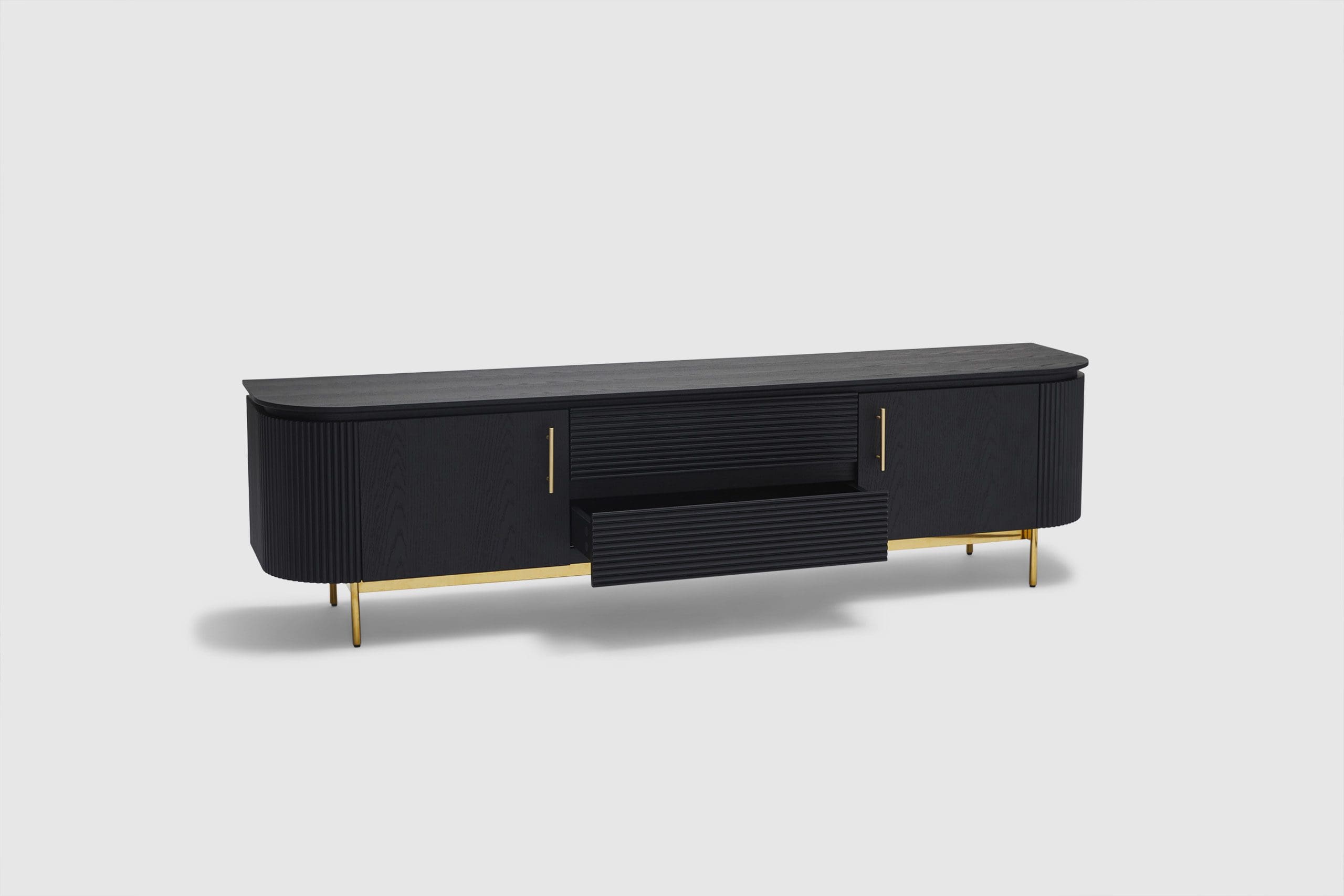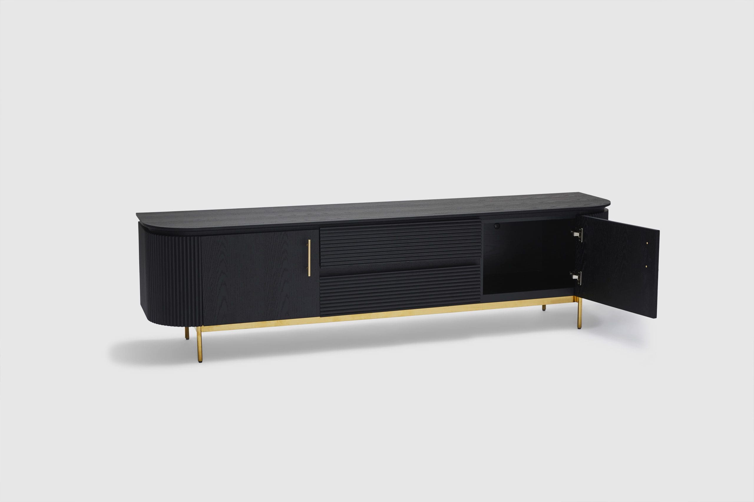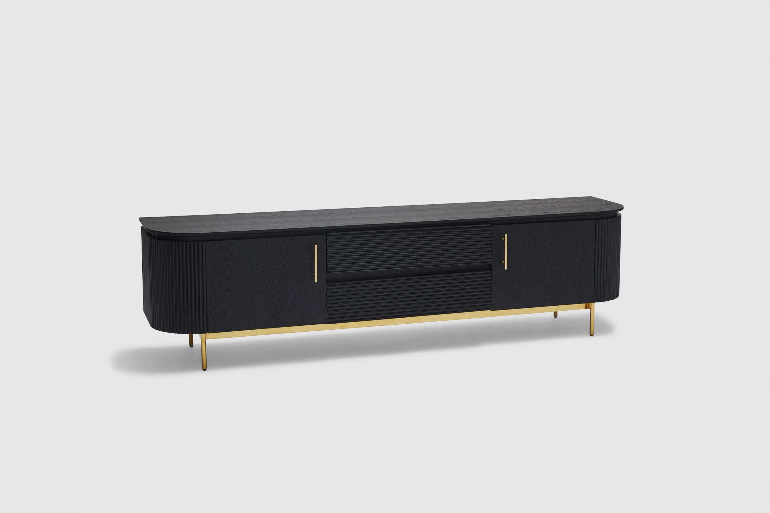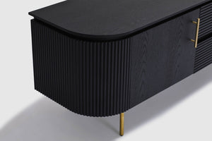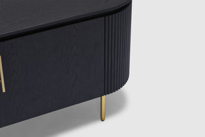 MORE CONFIGURATIONS & SIZESEffortlessly luxurious and chic, the Amaretto entertainment unit offers the right amount of dark oak wooden textures and brass gold finishes. Elevate your living space with the ribbed detailing and the sleek and precisely curved form - Amaretto offers a simple yet grandeur solution to storage and display. Pair with the matching credenza, coffee table, and dining table for the complete look.