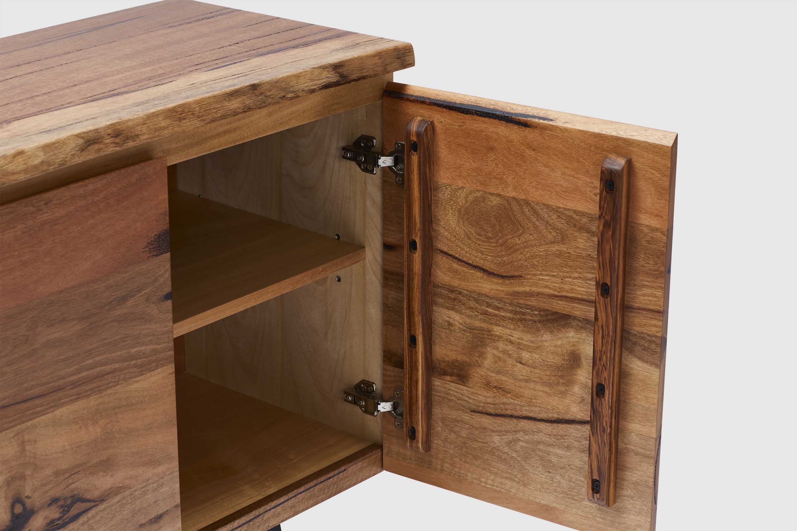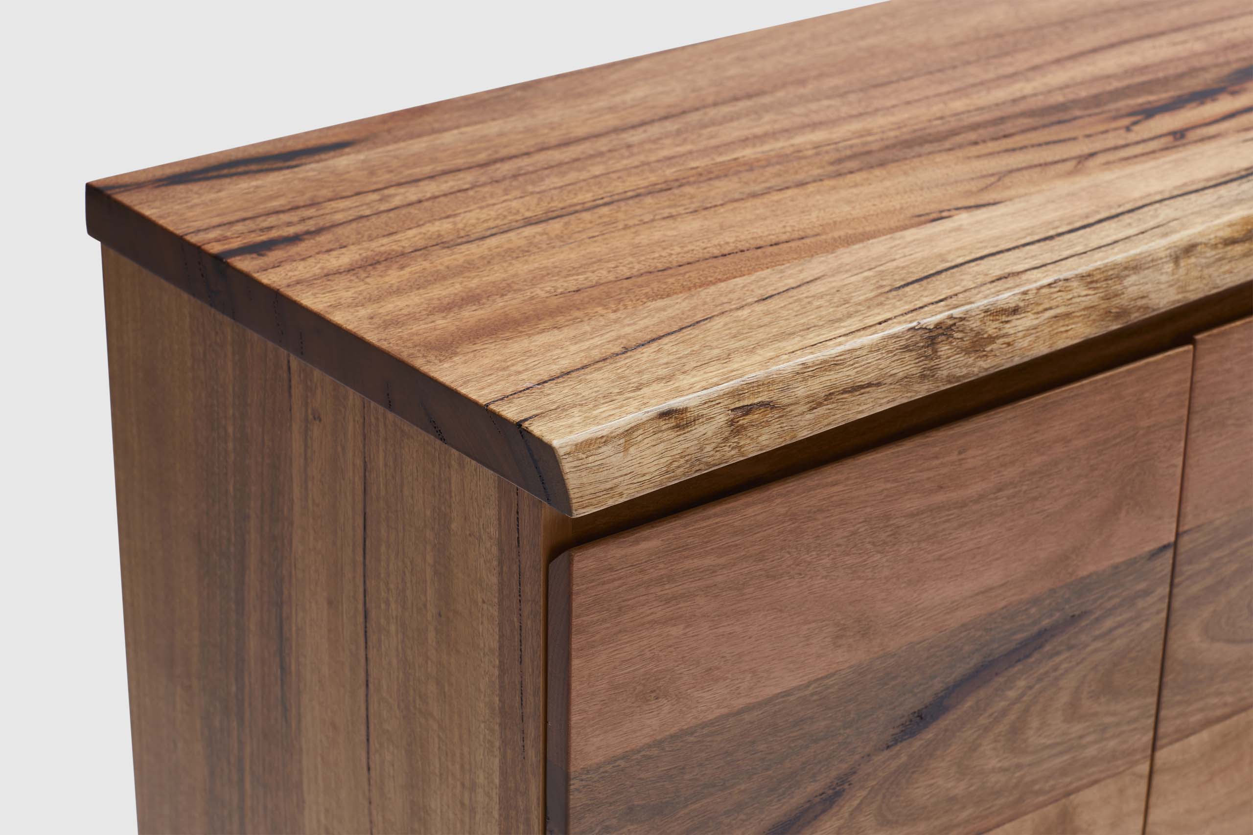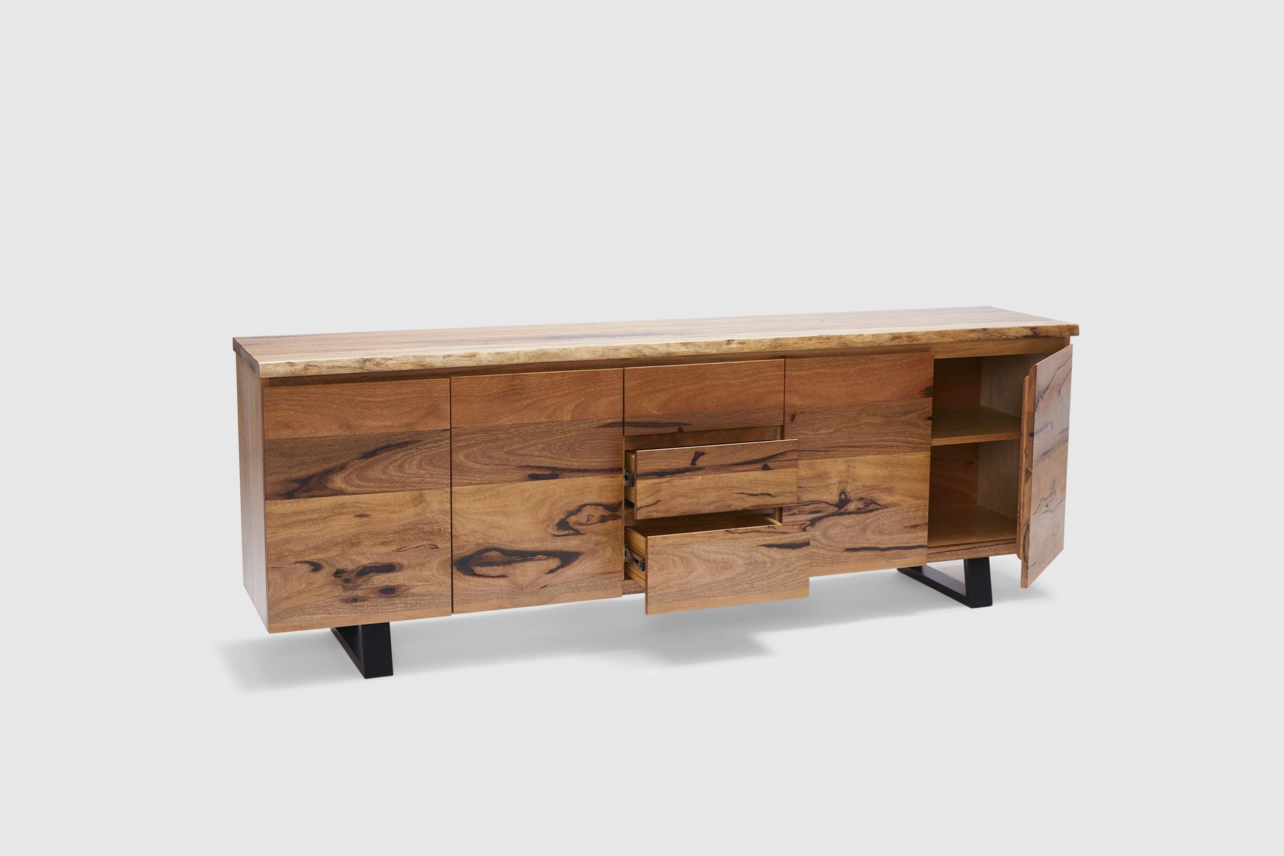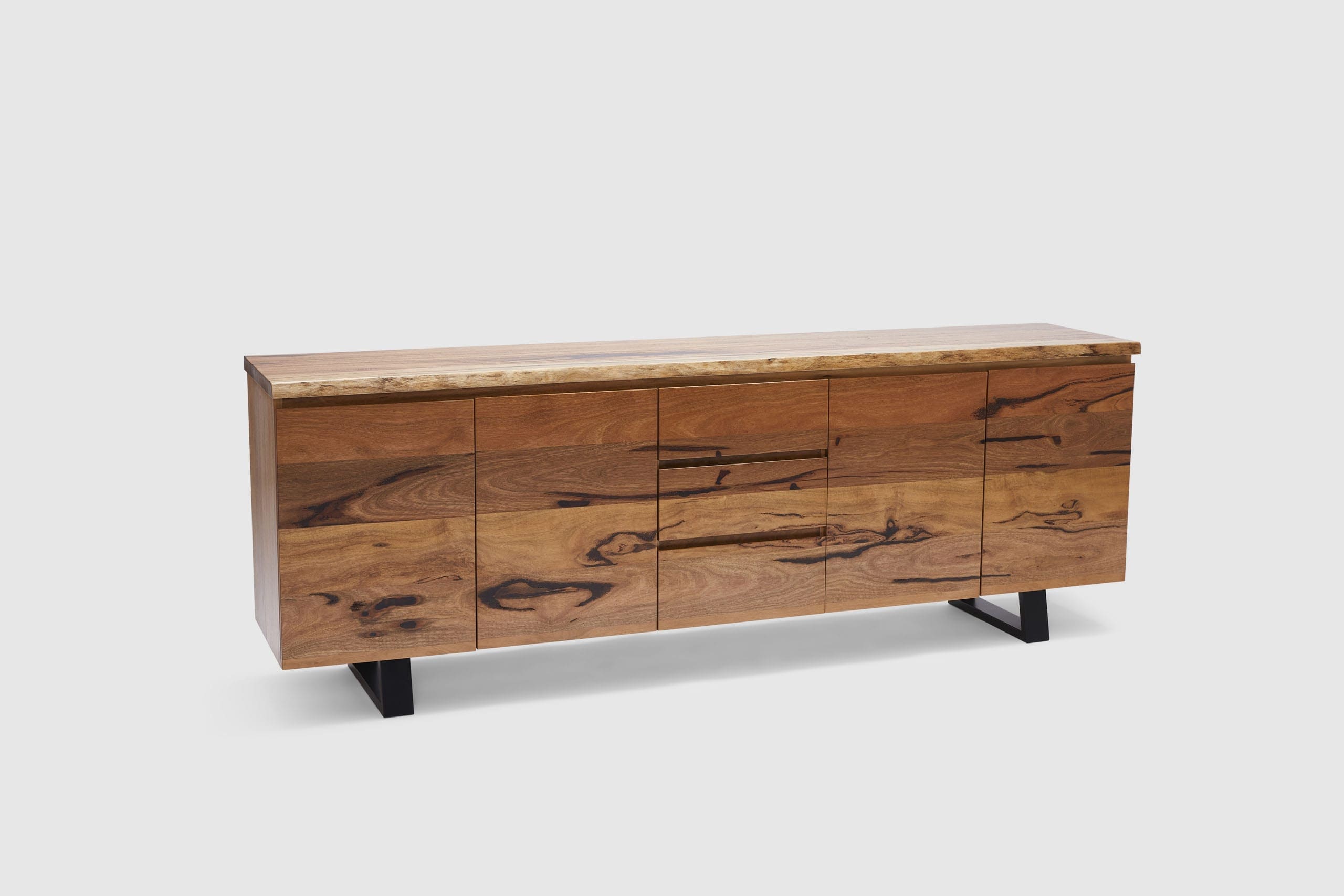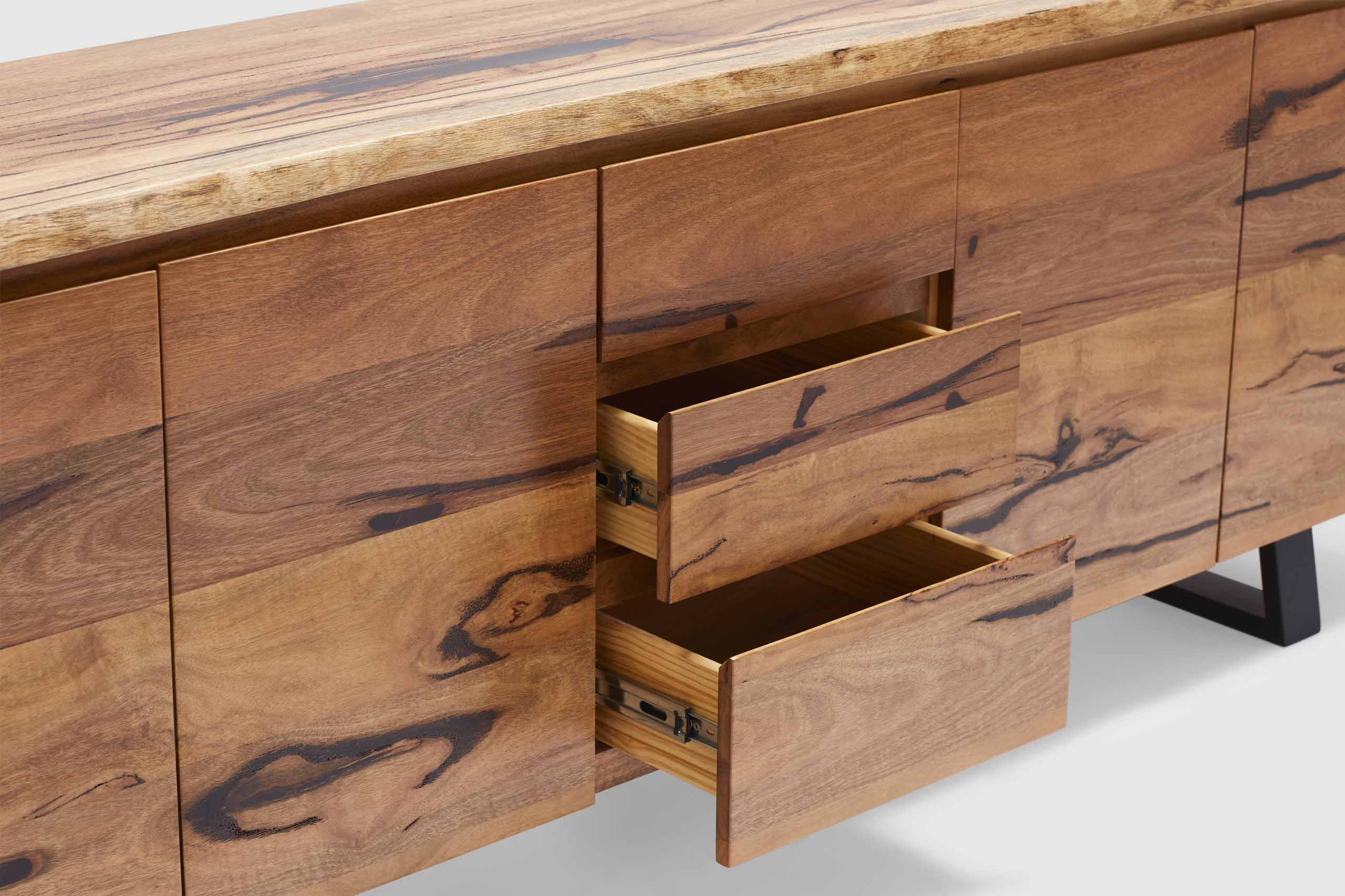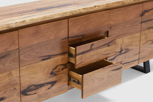 Exclusive to Adriatic, our feature grade Amazon live-edge range is crafted from premium solid Marri timber sourced from Western Australia. This stunning credenza features 4 soft closing doors, three central drawers and is finished with elegant black timber legs.