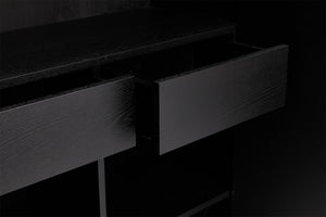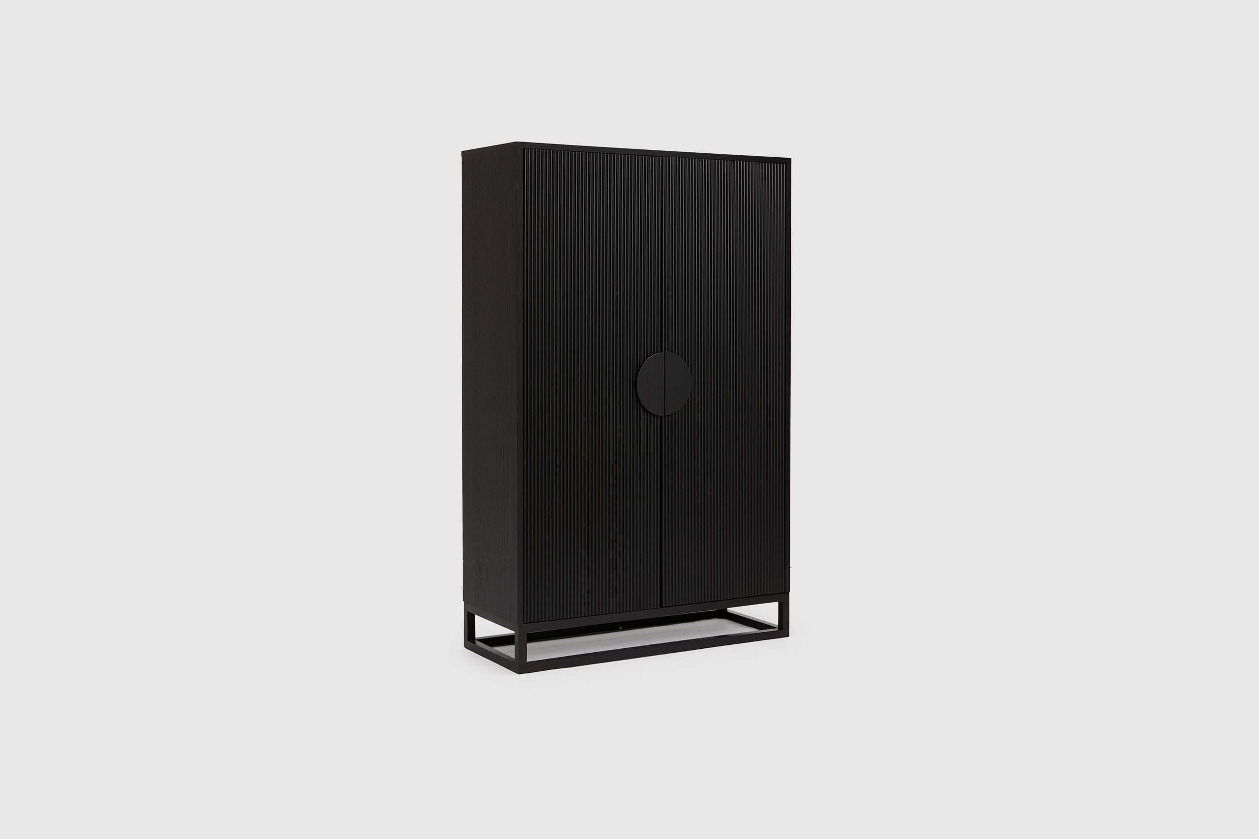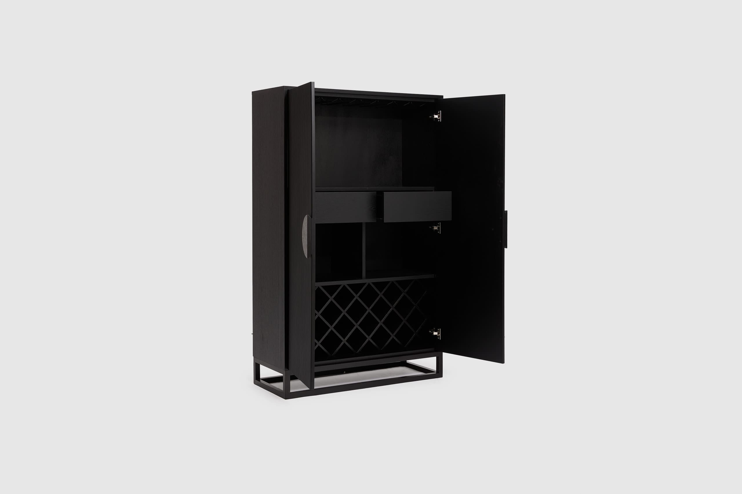 Boasting a sleek design, our Artie bar cabinet is sure to be the anchor of any home. Two doors with semi circle handle designs present subtle curved lines to the design, while the vertical wood slatted panels ensures this unit is an undeniable staple which elevates your space. The wide and generous size offers ample display and storage space. Full range includes matching buffet, console, coffee table and dining table.
