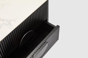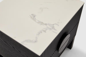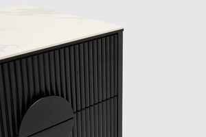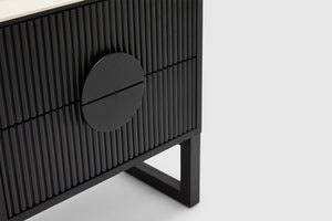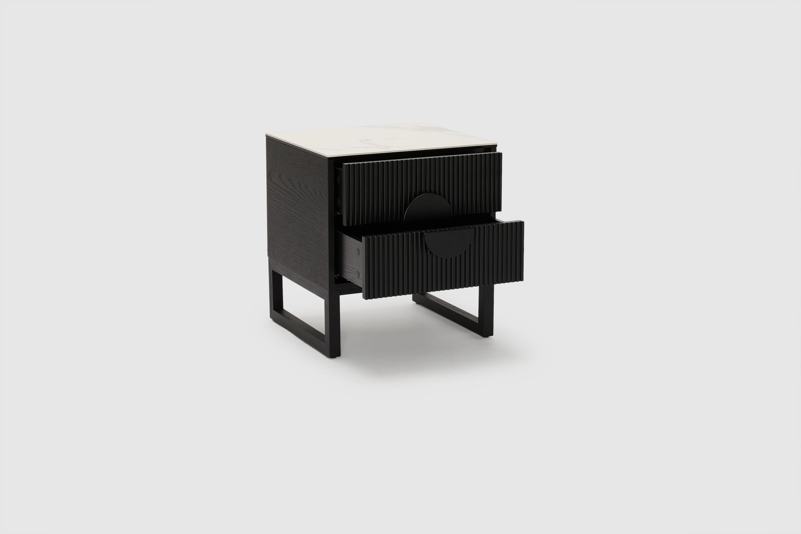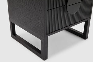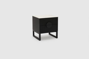 Enhance your bedroom with the stylish Artie bedside table. Combining personality and functionality, this bedside table features two drawers with ample storage, while the slatted timber panels add a touch of charm. The circular handles make it a perfect fit for contemporary bedrooms, adding a modern and sleek touch to your space.
