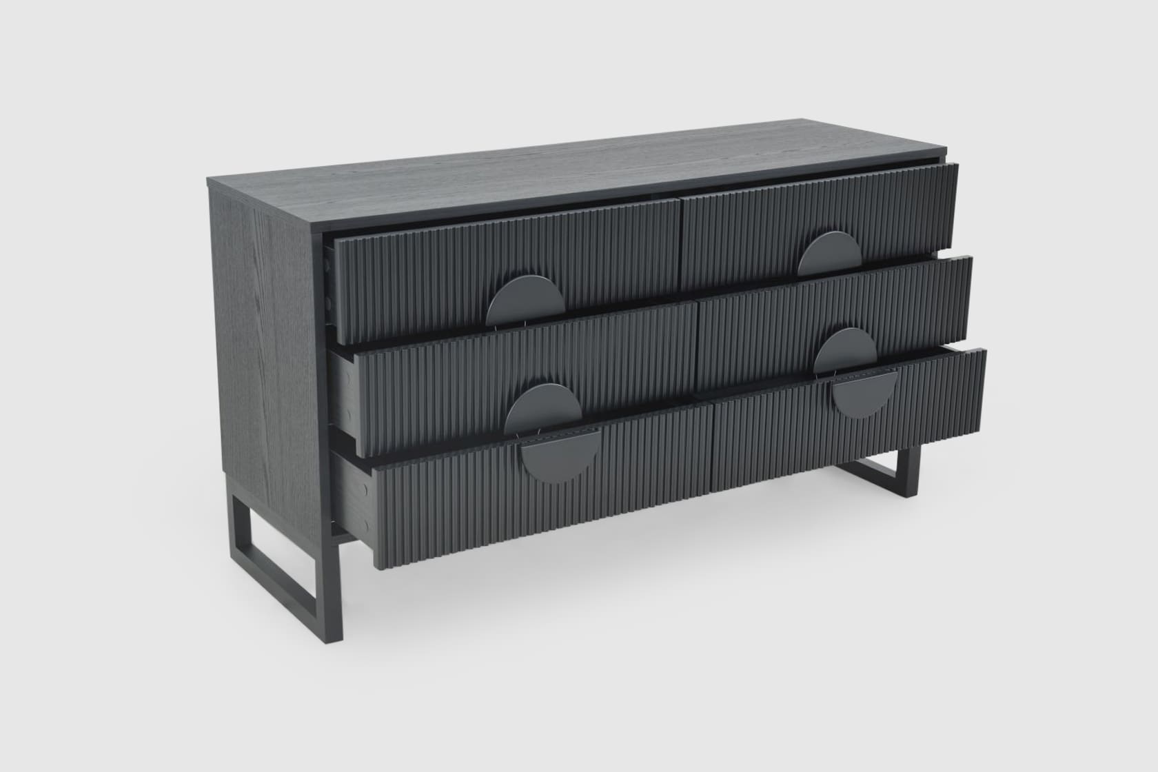 Enhance your bedroom with the stylish Artie dresser. Combining personality and functionality, this dresser features six drawers with ample storage, while the slatted timber panels add a touch of charm. The circular handles make it a perfect fit for contemporary bedrooms, adding a modern and sleek touch to your space.