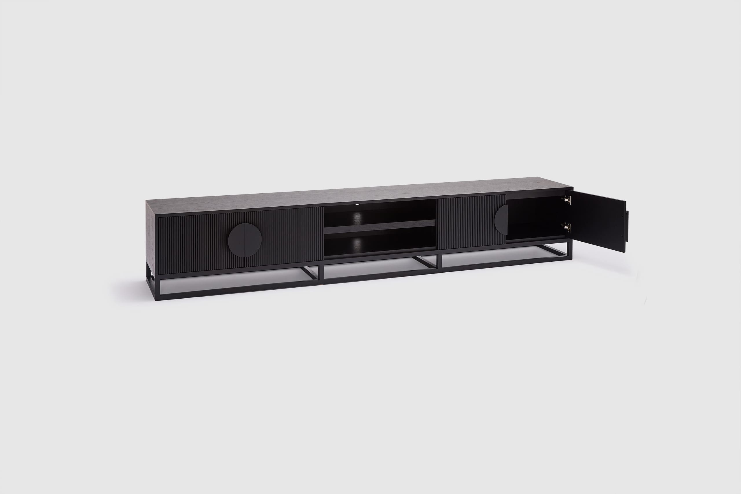 MORE CONFIGURATIONS & SIZESBoasting a sleek design, our Artie entertainment unit in wenge is sure to be the focal point of any space. Four doors with semi circle handle designs present subtle curved lines to the design, while the vertical wood slatted panels ensures this unit is an undeniable staple which anchors the room. The wide and generous size offers ample display and storage space. Full range includes matching buffet, dining table and bedding range.