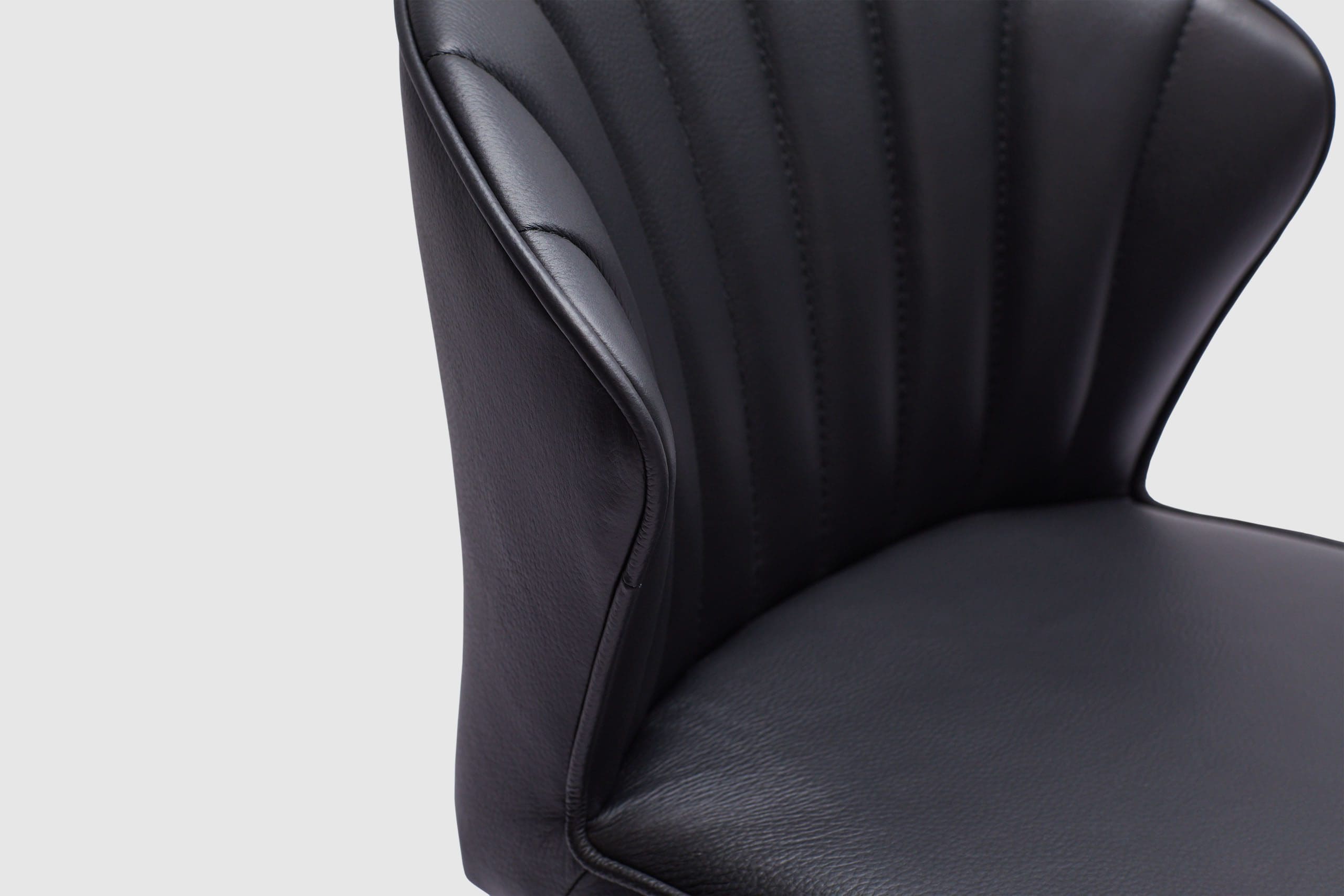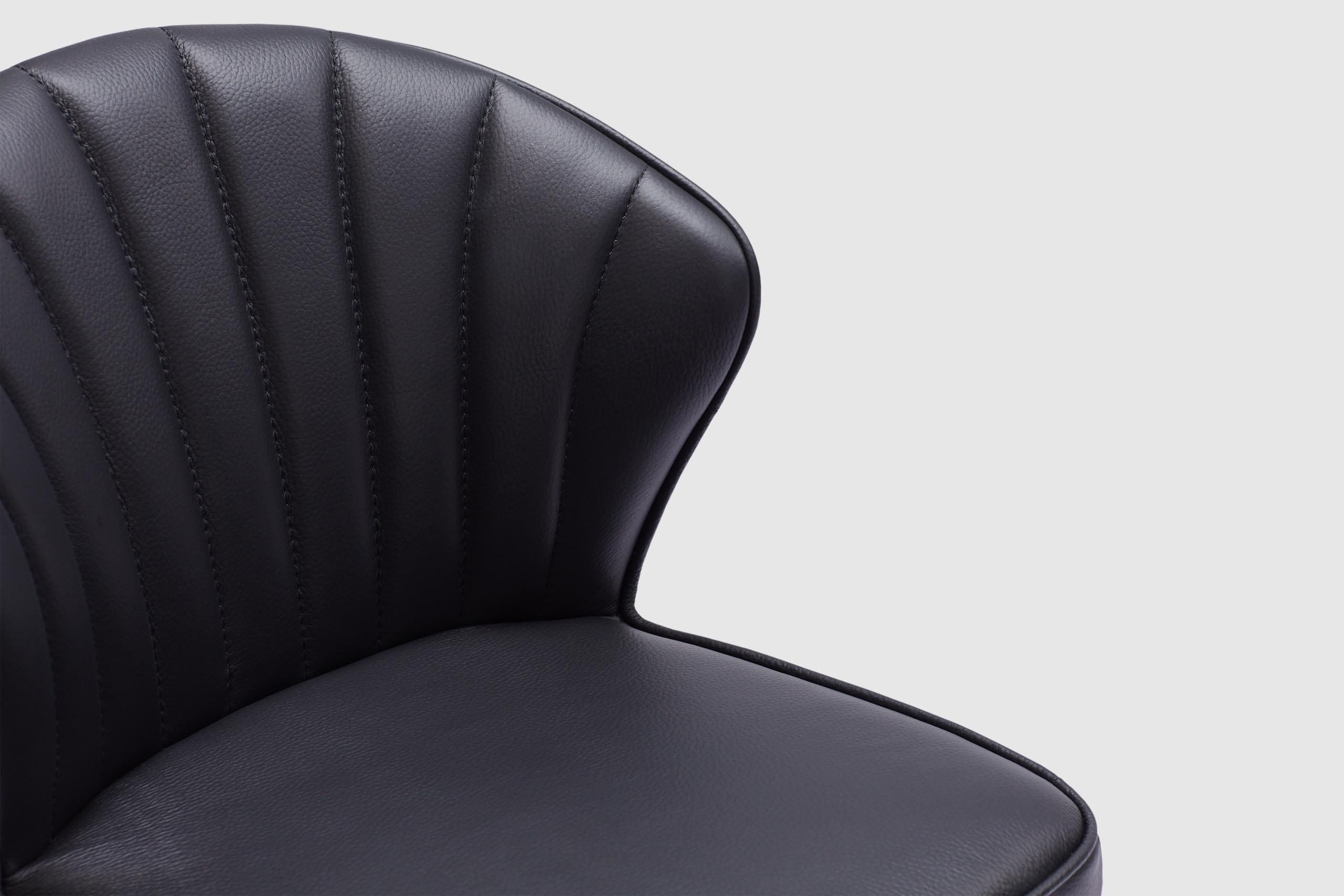 The curved body and slender base of the Charlotte bar stool create a distinct yet clean silhouette. Prestige Black leather envelops the chair, presenting a modern stool that works well in any dining space. Pair with the matching chair for the ultimate look!