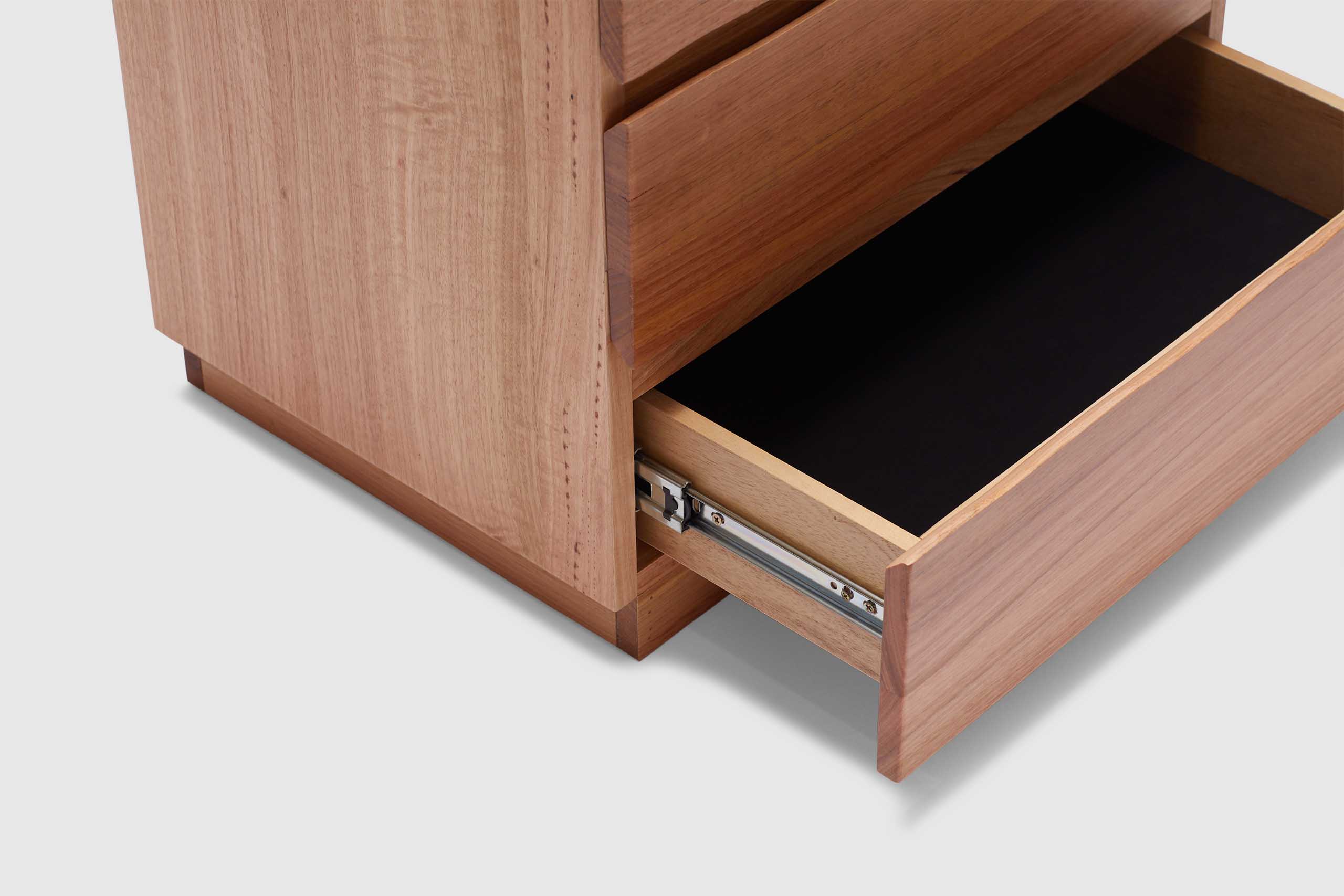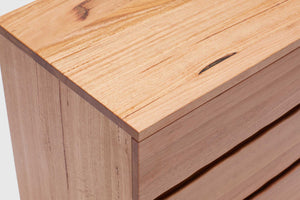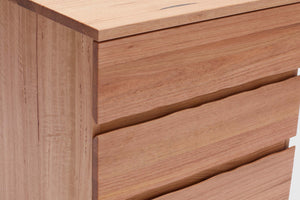 Offering natural beauty with a coastal twist, our Collins range of bedding is sure to make itself home in any bedroom. The bedside table features 3 drawers, making it perfect for storage. Fall in love with the stunning features of Australian Messmate timber which adds both elegance and charm. Pair with the matching bedframe, tallboy, dresser, and mirror for the perfect look in your home.