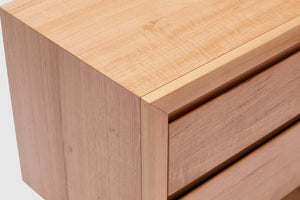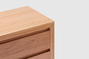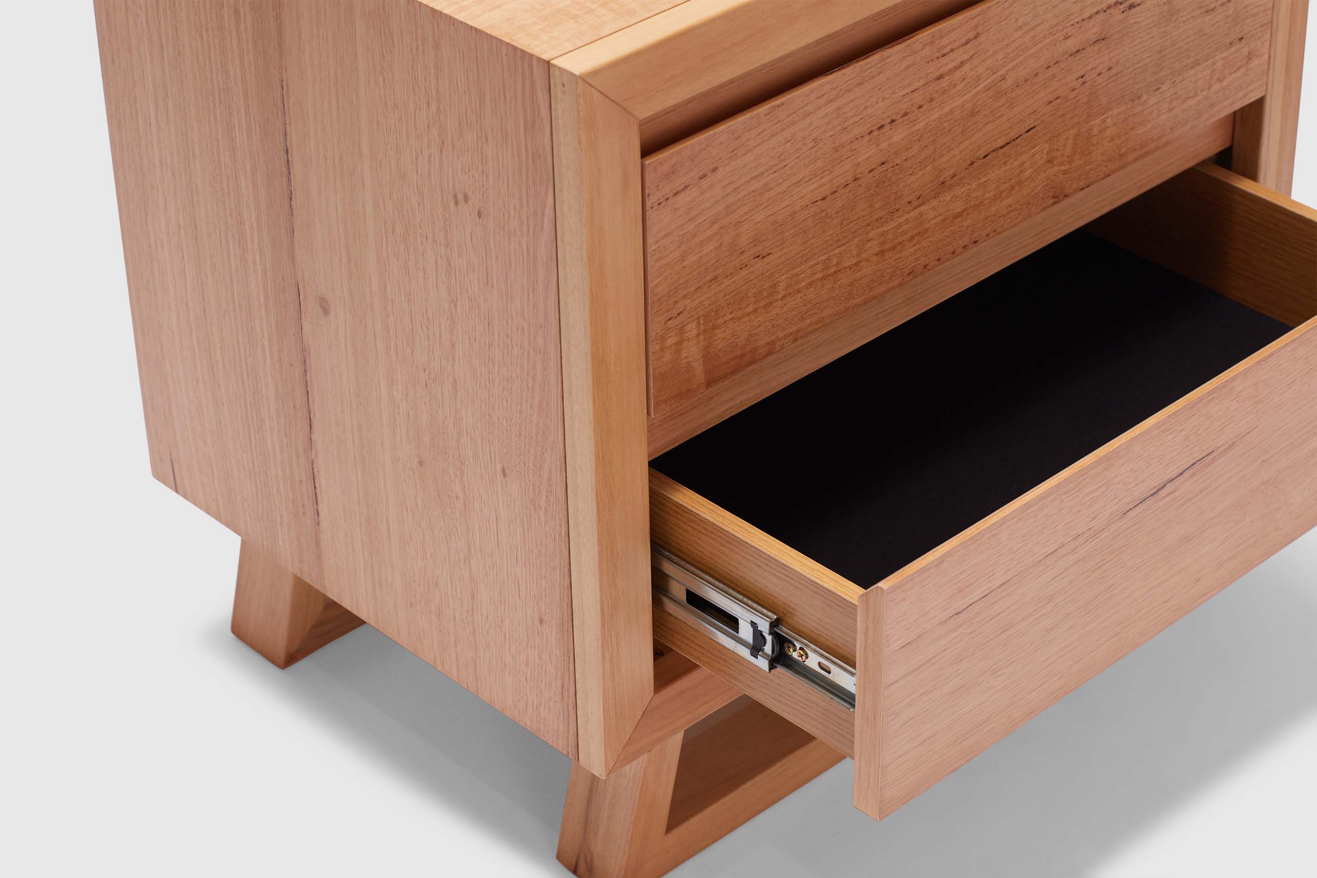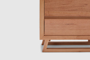 Inspired by Scandi design, the Dante offers an understated centrepiece through modern lines and a geometric design. The Australian Messmate timber construction ensures this suite is both minimalistic and stylish. A statement piece designed to last, the full range features matching bedframe, tallboy, and dresser.