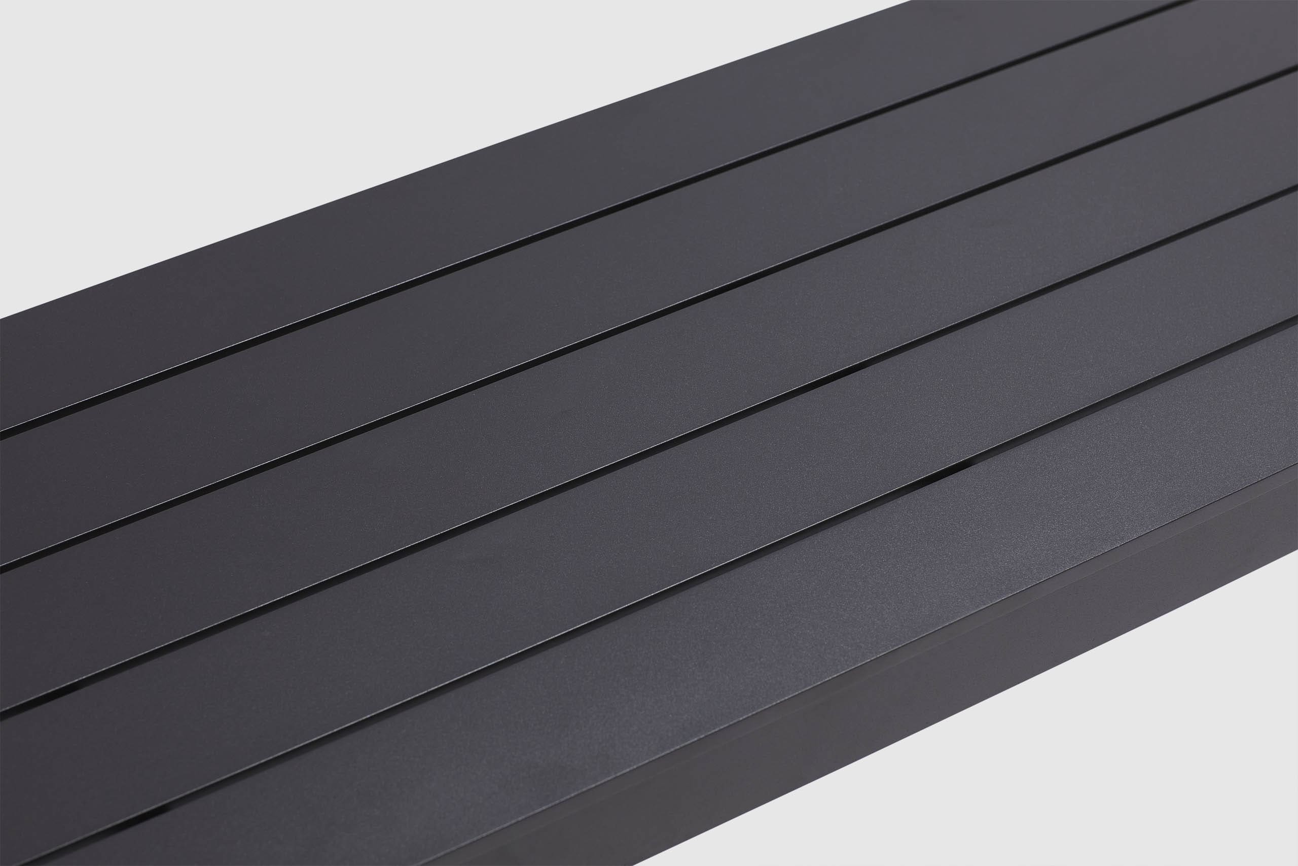 The Eneko bench seat is a contemporary piece which fits into any outdoor space. Featuring a powder coated aluminium frame and slatted aluminium top, Eneko helps maximise seating at a table, and provide a tailored, minimal look. Maintenance is a breeze as it only requires wiping down with a soft damp cloth when necessary.