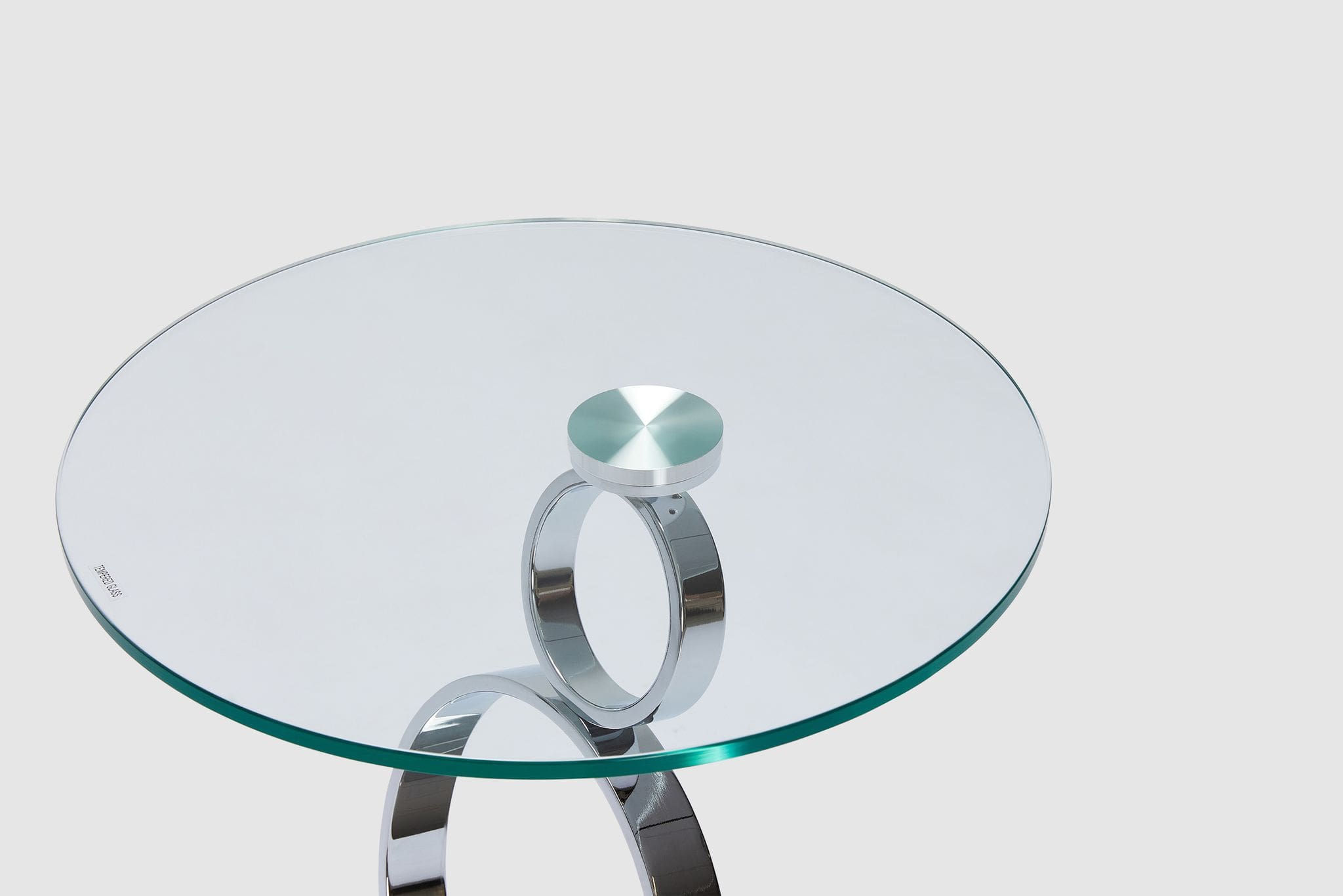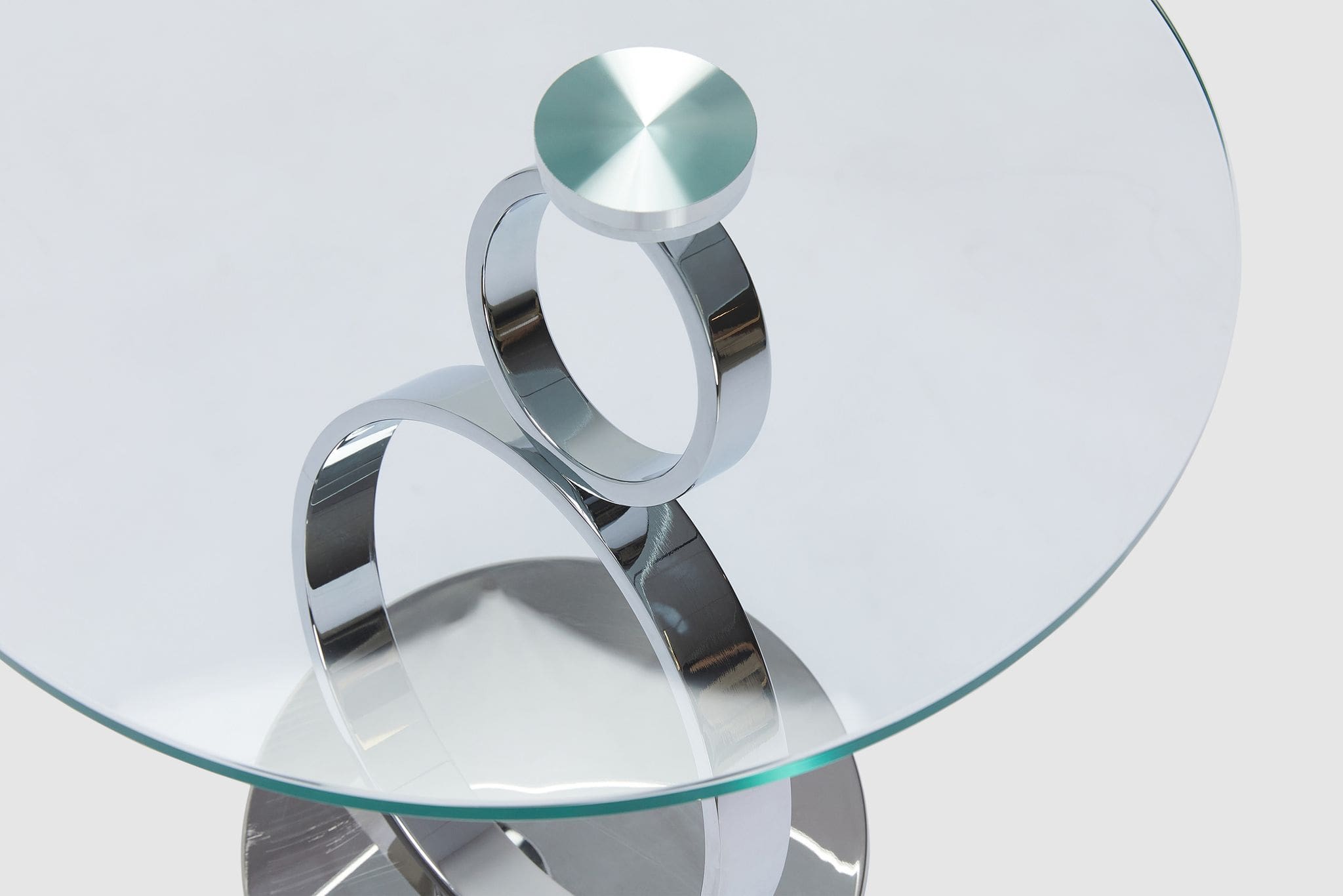 The Fable Lamp Table features tempered glass and its unique design perfectly compliments the matching coffee table!