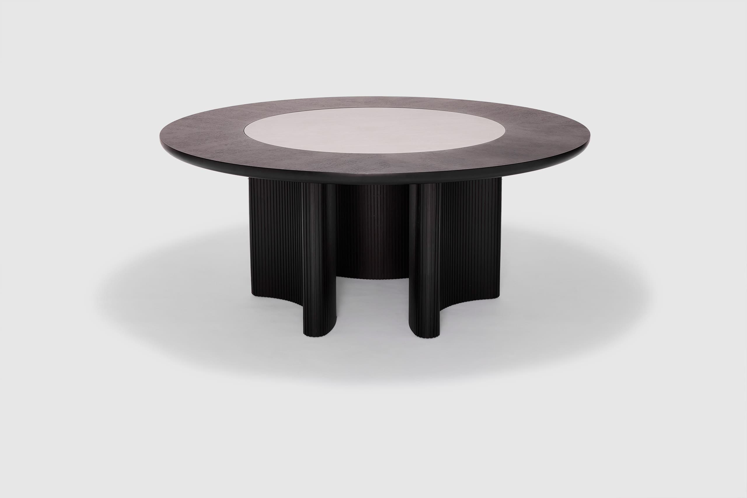 The Galileo Round Dining Table with Lazy Susan creates a fantastic spot for entertaining. A richly textured American Oak top in a stunning wenge stain lends this dining table a natural beauty that’s complemented with curved timber legs. The 180cm round tabletop creates a generous yet intimate environment for hosting family and friends, while the built-in Lazy Susan in grey ceramic makes serving a breeze!