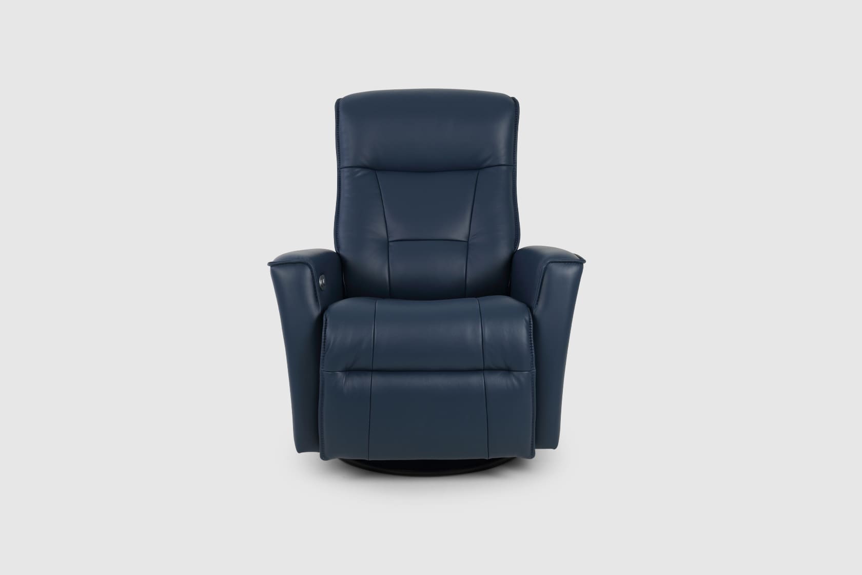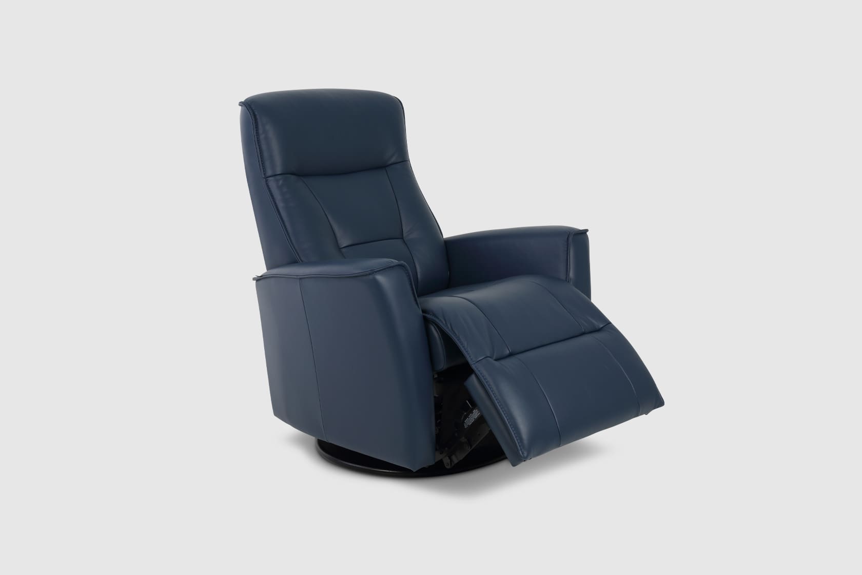 The Fjords Harstad swing relaxer, featuring manual release headrest angle, makes the seating experience ergonomic and gives your lower back correct support. Available in all our leathers and select fabrics, the Harstad is a swivel/glider/rocker recliner available in motorized and manual versions. The design is available in two sizes, large and small. Black Base is standard on Harstad.