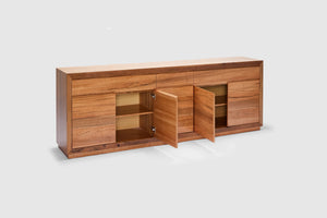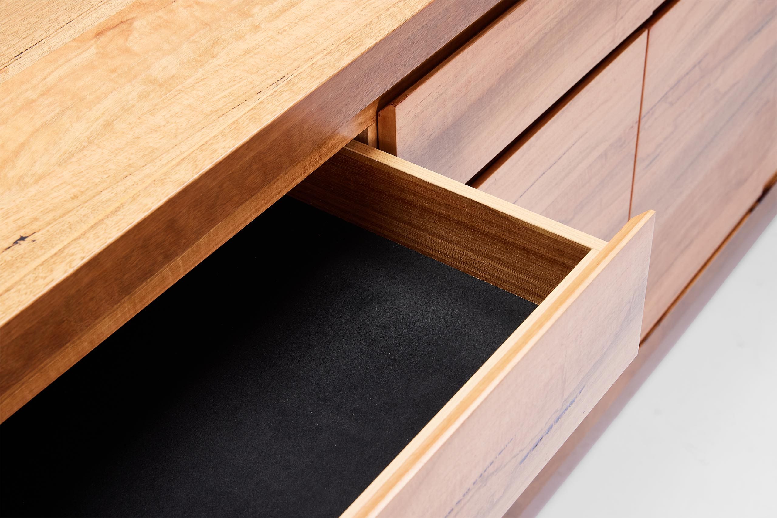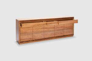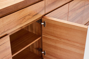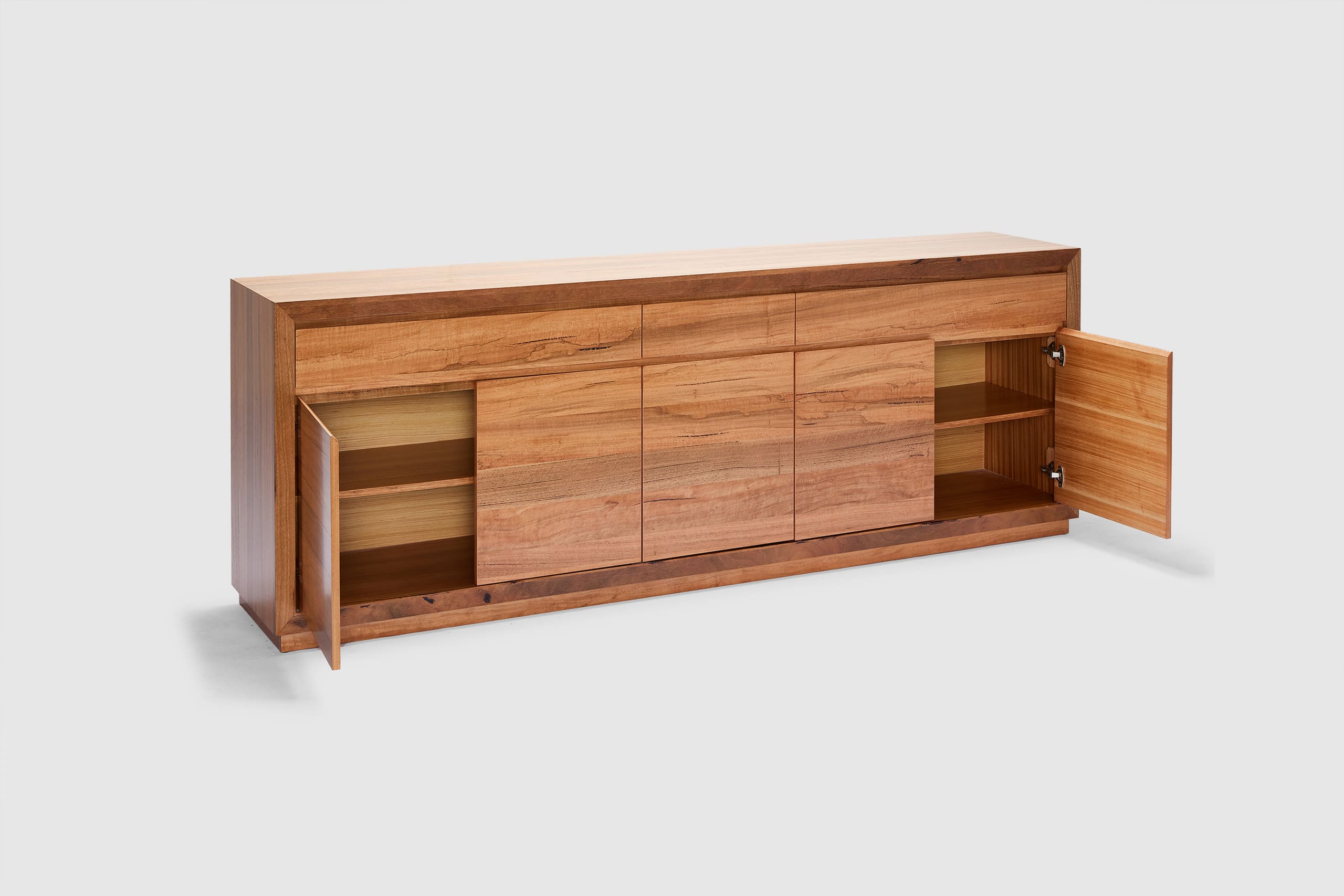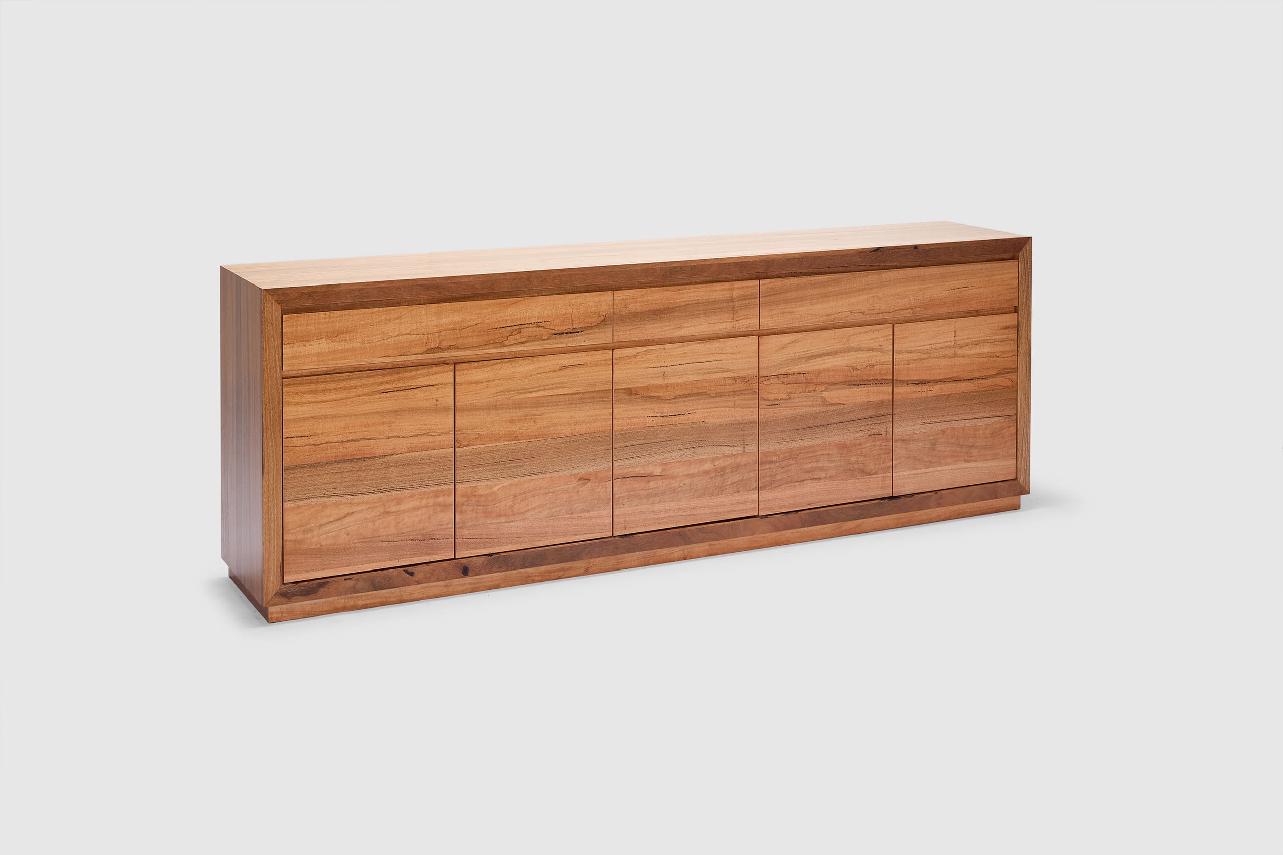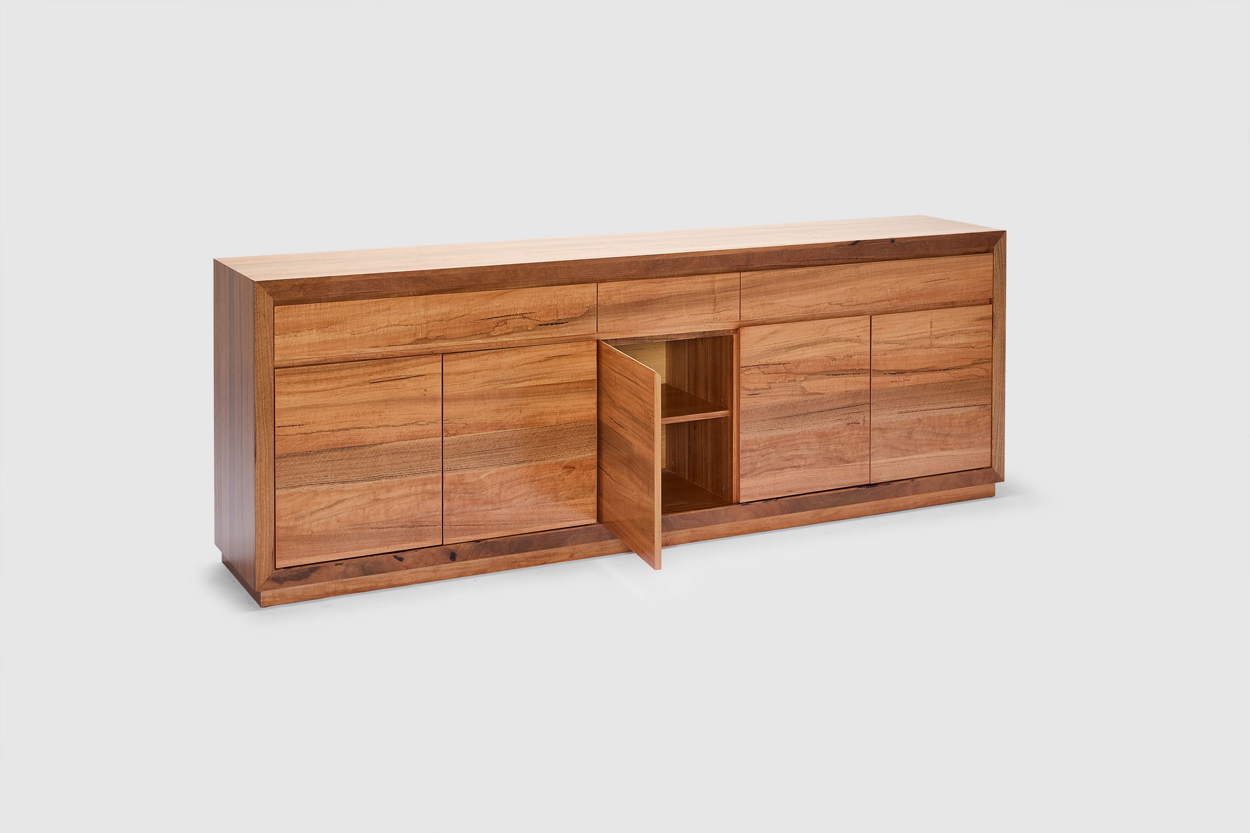 Adopt an understated style in your dining room with the Kalgoolie Buffet. Made from hardwearing Australian Marri timber, this buffet provides plenty of storage space for tableware and cutlery with five doors and three pull-out drawers. The Kalgoolie range also features a matching dining table, entertainment unit, coffee and side table.