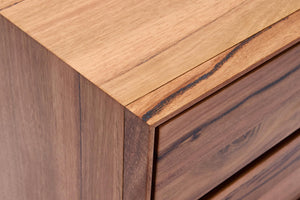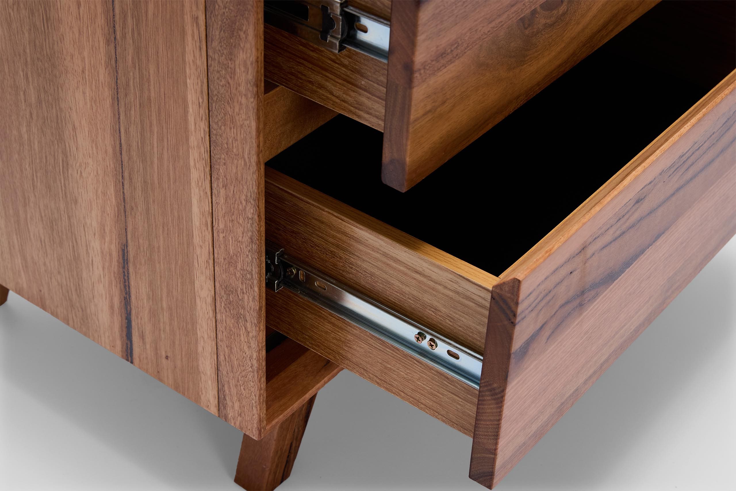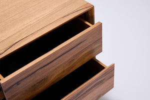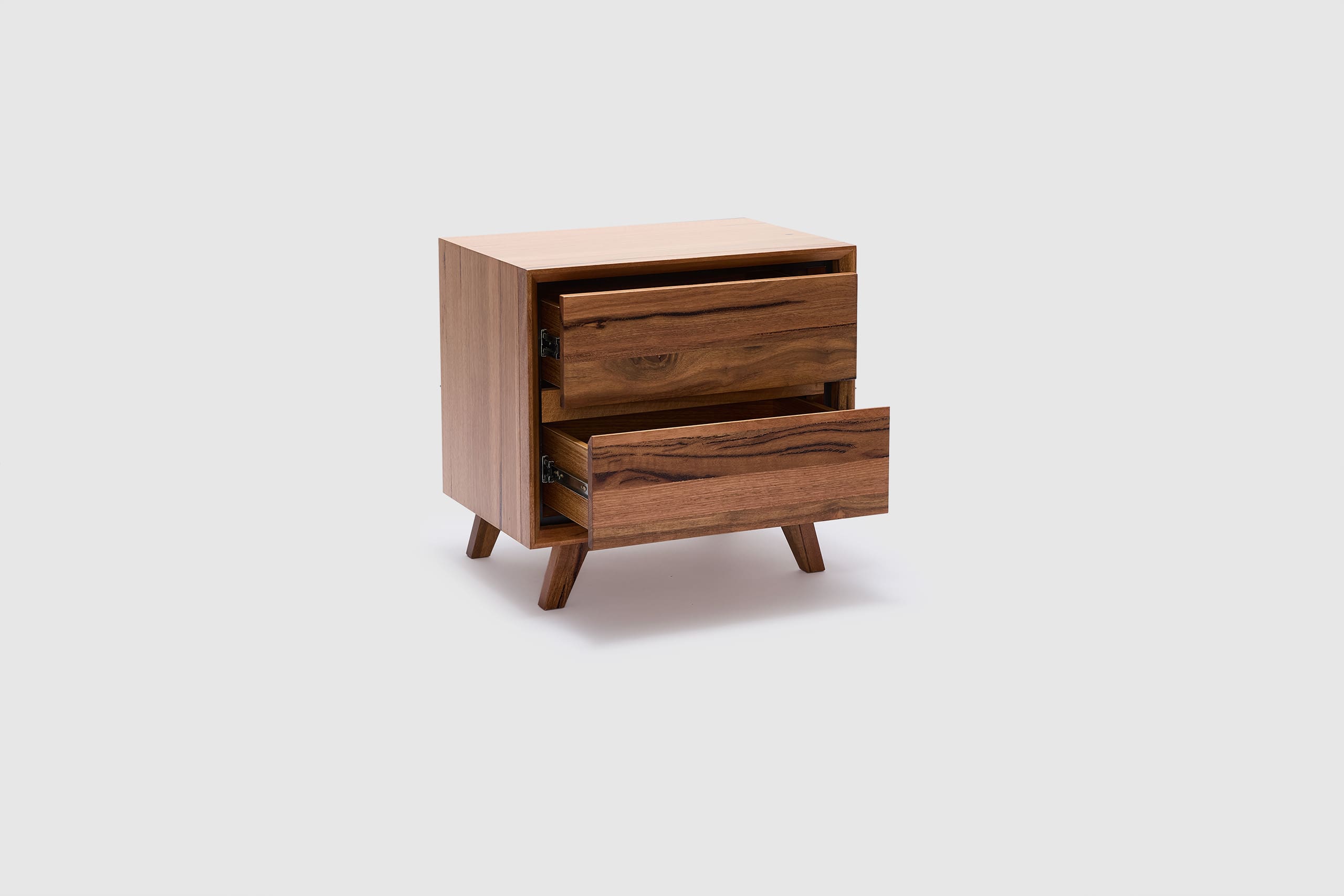 Make night-times comfortable and stylish with the Kelsey bedside table. Made from Australian Marri timber, it is the perfect companion for any bed and is sure to stand the test of time. Two drawers offer plenty of room for your everyday essentials. Full range includes matching tallboy and bedframe.