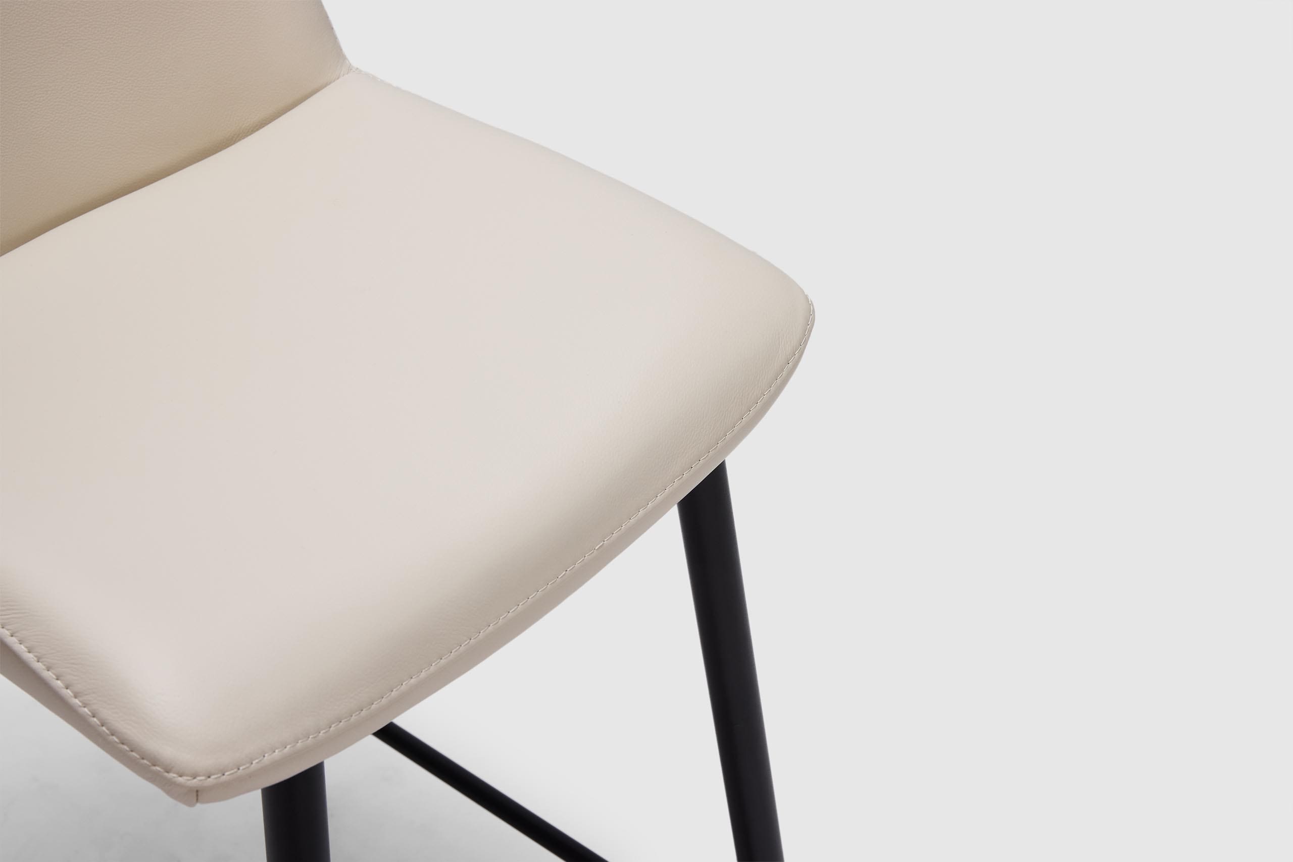 Stylish and contemporary, the Laguna bar stool is a standout for any kitchen or dining area. Upholstered in frost leather, the stool is finished with sleek black legs and a contoured cushioned seat for extra comfort. Pair with the matching dining chair for the ultimate look!