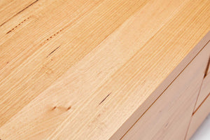 Messmate is a well-known and regarded Australian timber, with variations in colour from pale browns & black markings, through to light yellows and/or peach. A species rich and warm in detail, with moderately coarse textures of interlocking and/or straight grain features. Gum veins and crevasses are an inherent feature of Messmate, which has a moderate hardness and strength making it a versatile choice for furniture design.