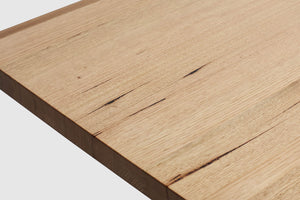 Messmate is a well-known and regarded Australian timber, with variations in colour from pale browns & black markings, through to light yellows and/or peach. A species rich and warm in detail, with moderately coarse textures of interlocking and/or straight grain features. Gum veins and crevasses are an inherent feature of Messmate, which has a moderate hardness and strength making it a versatile choice for furniture design.