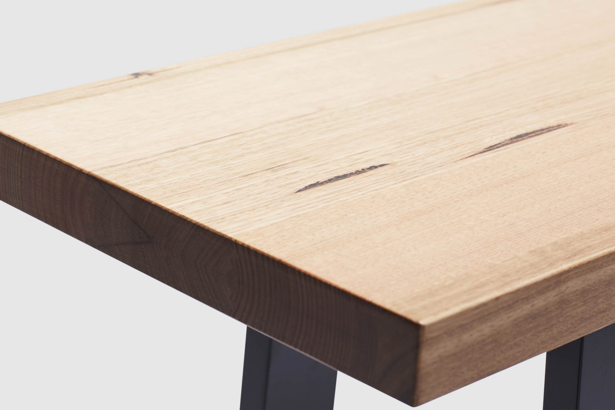 Messmate is a well-known and regarded Australian timber, with variations in colour from pale browns & black markings, through to light yellows and/or peach. A species rich and warm in detail, with moderately coarse textures of interlocking and/or straight grain features. Gum veins and crevasses are an inherent feature of Messmate, which has a moderate hardness and strength making it a versatile choice for furniture design.