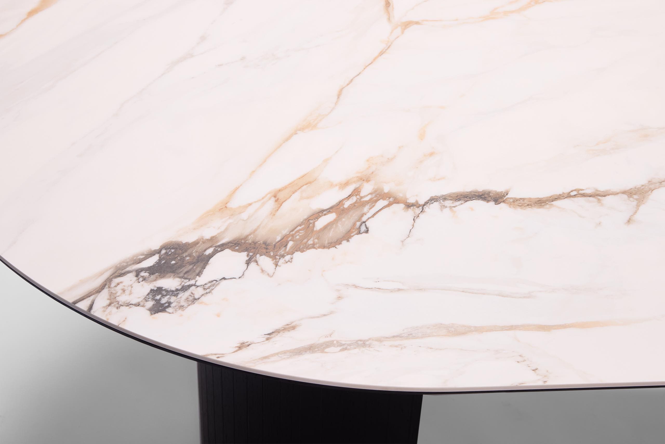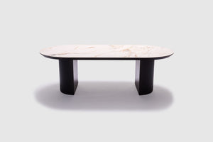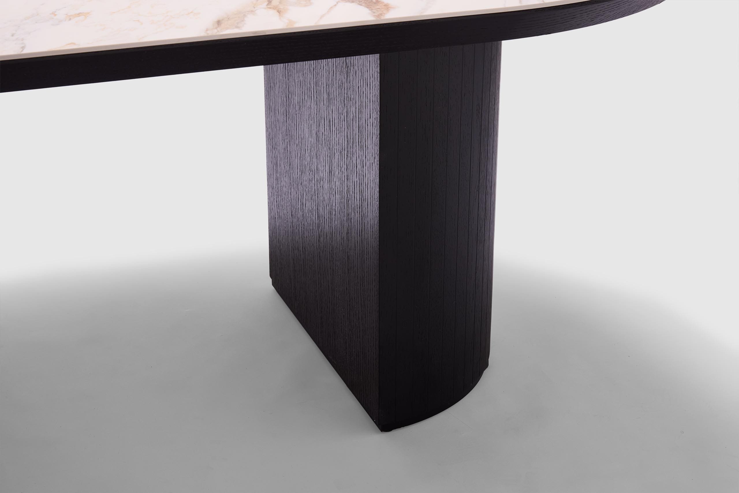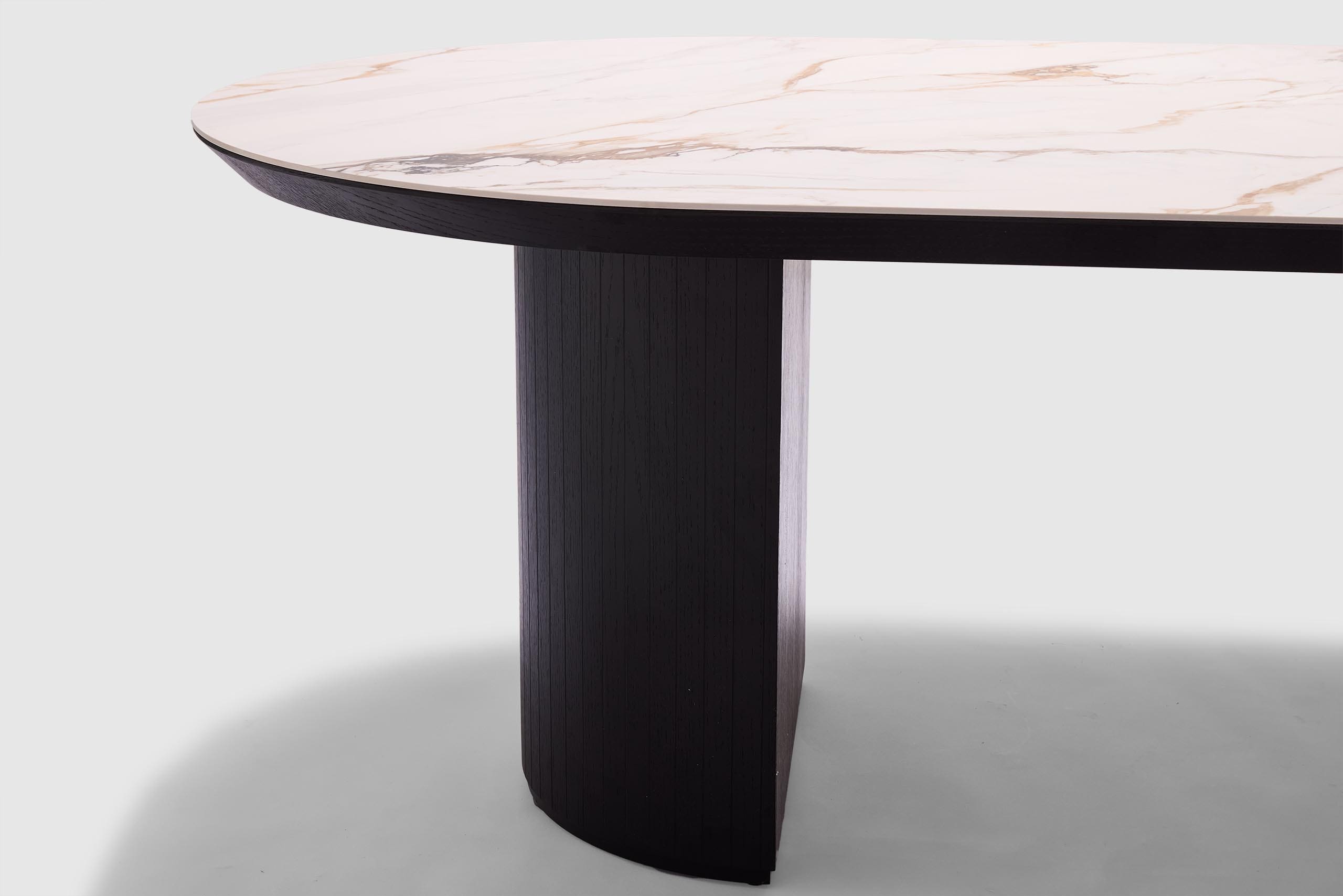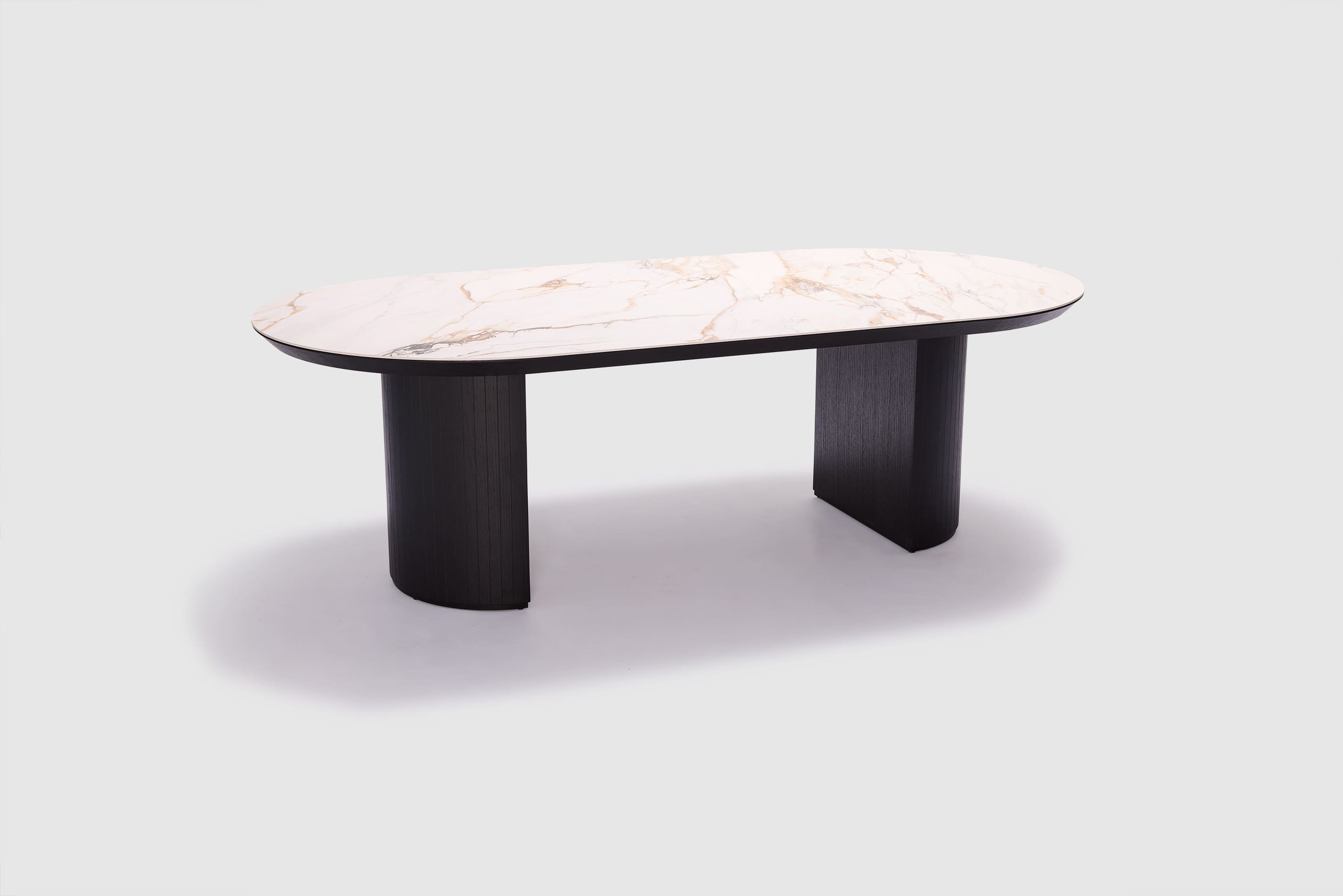 The Picasso Oval Dining Table features crescent-shaped legs and a stunning sculptural design. The Picasso matt ceramic top provides Its presence is large in scale and proportion. With its generous dimensions, this dining table accommodates 8-10 people.