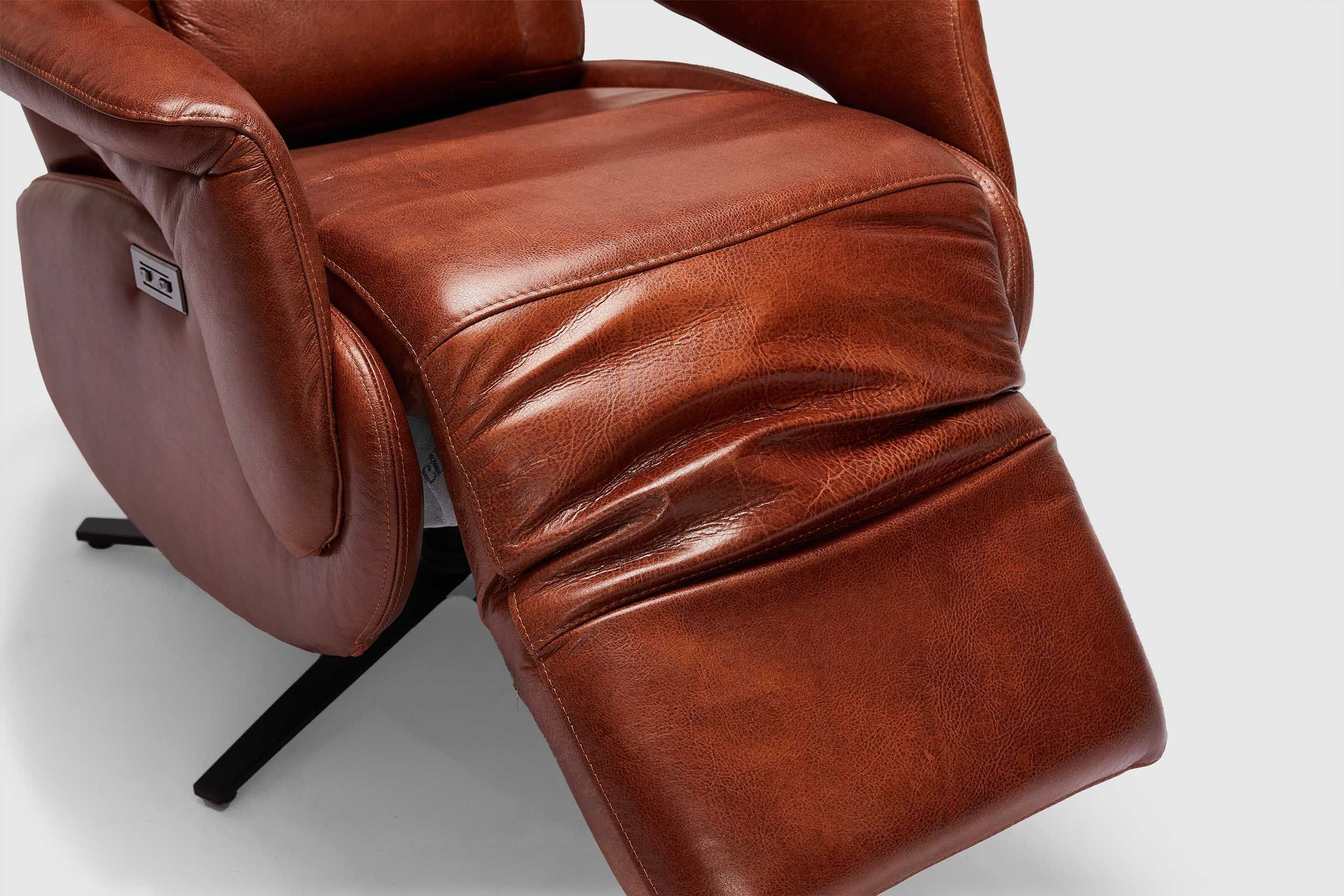 Discover unadulterated luxury with our Saxo recliner chair in vintage leather. you can finally call comfort your own. Innovative European design is exhibited in supple semi-aniline leather upholstery, forming a lavish piece with timeless and low-maintenance style.