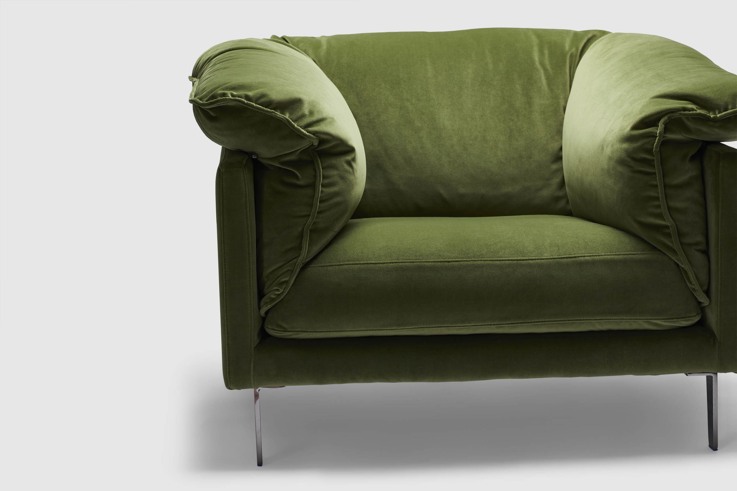 A glamourous accent chair for any space, Sela sculpts a stylish chair that's also exceptionally comfortable. Distinguished by its striking profile and rich velvet upholstery, the chair displays a relaxing retreat with clean lines and an open attitude. Sela is an Adriatic exclusive!