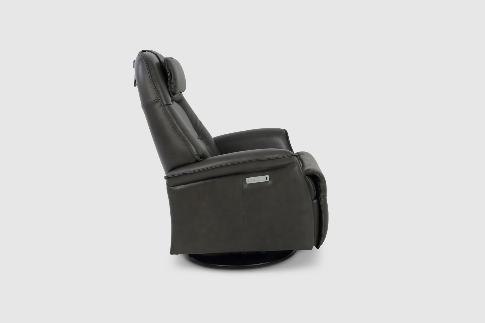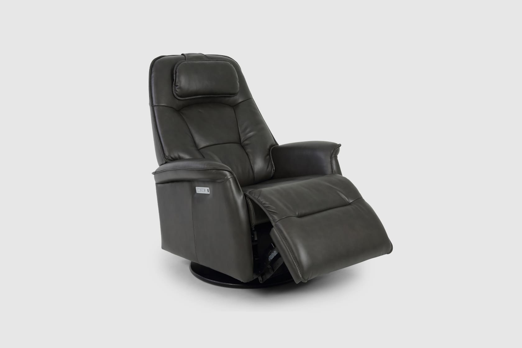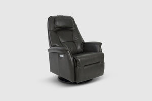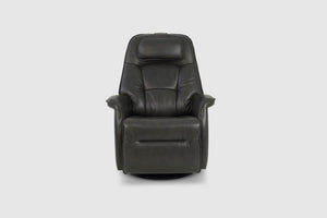 The Fjords Stockholm swing relaxer, featuring an adjustable head pillow and motorized articulating headrest, makes the seating experience ergonomic and gives your lower back correct support. Available in all our leathers and select fabrics, the Stockholm is a swivel/glider/rocker recliner available in motorized and manual versions. Available in all our leathers and select fabrics, Stockholm is available in two sizes, small and large.