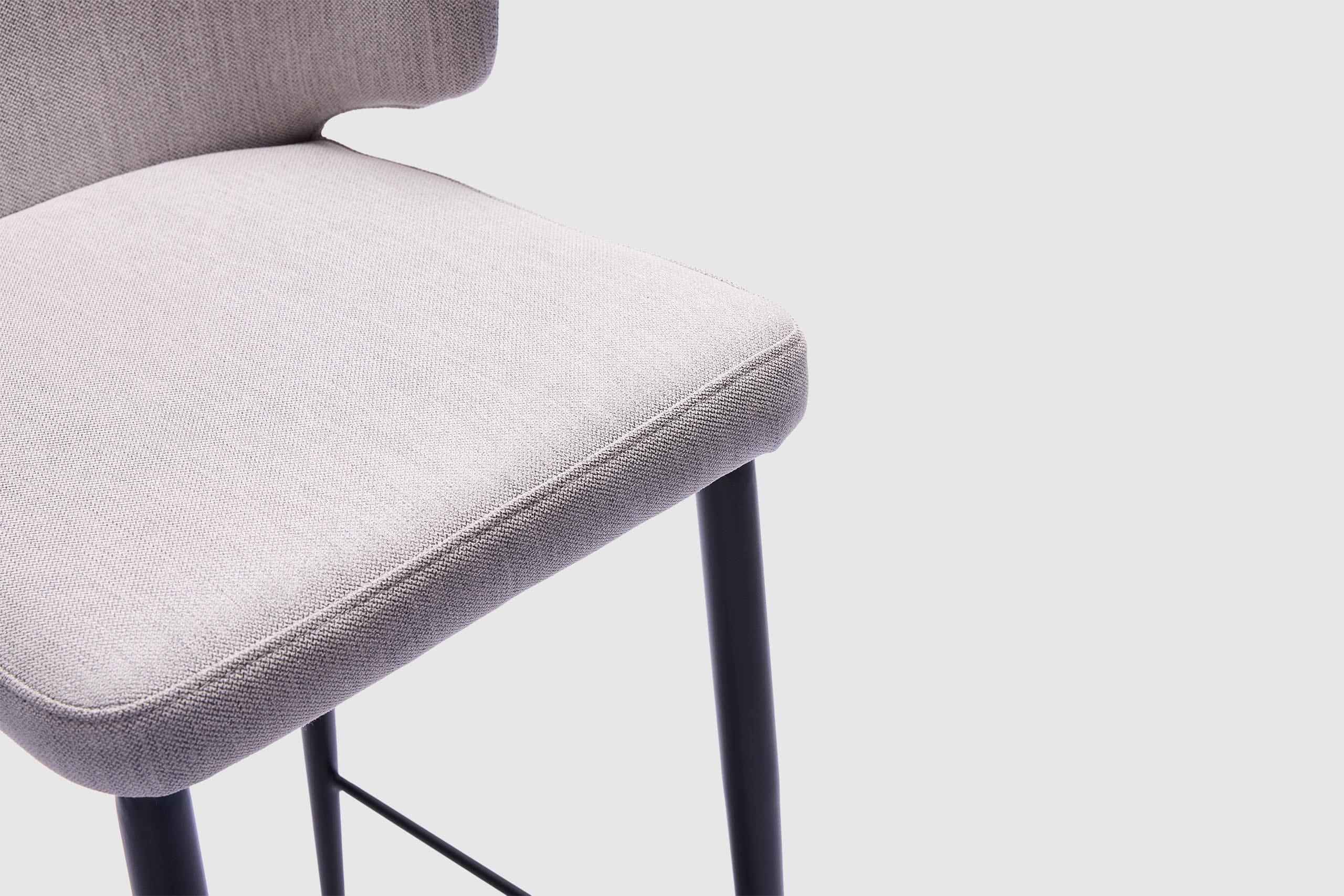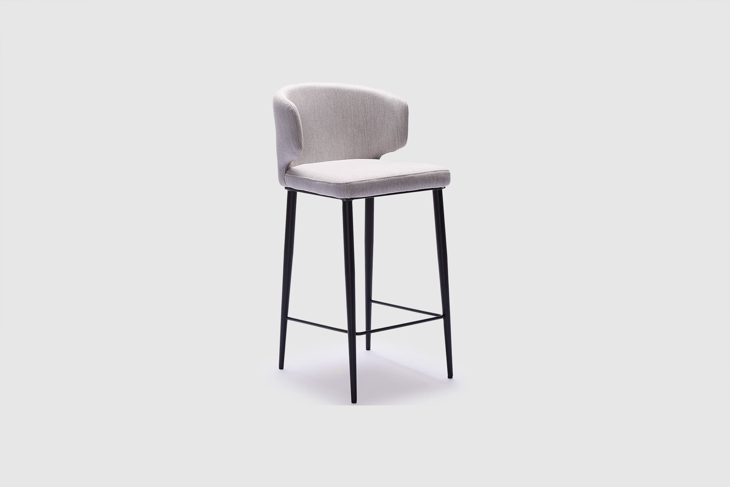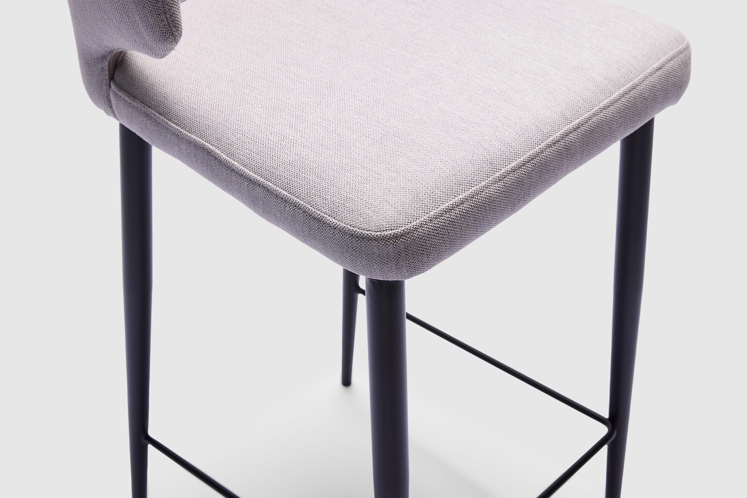 The Taz Bar Stool offers a sophisticated and practical seating option, seamlessly combining a black metal base with the sleek contours of light grey fabric in both the seat and backrest. With its striking presence, Taz is perfect for achieving a modern and sophisticated aesthetic, making it an ideal addition to any interior.
