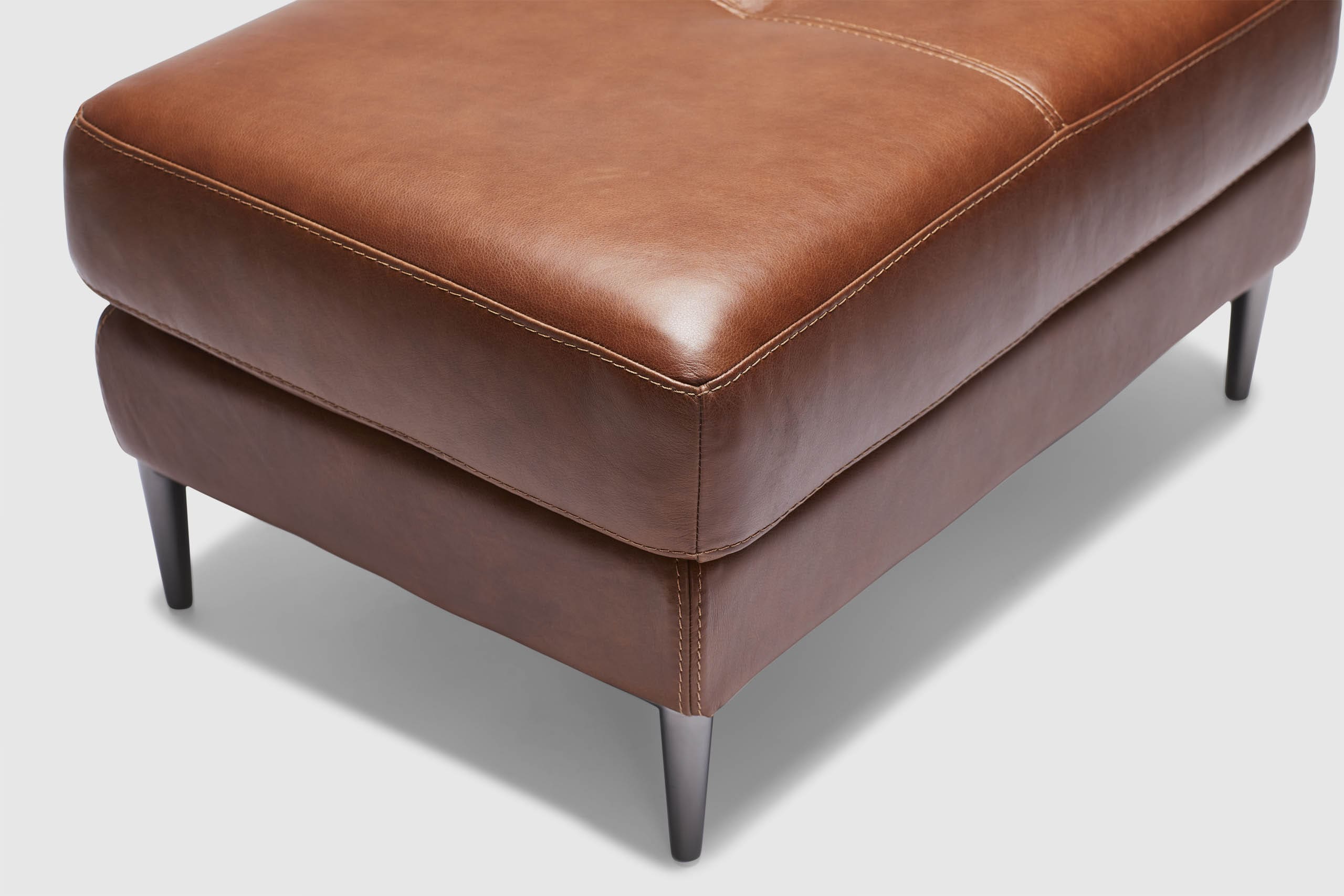 MORE CONFIGURATIONS & SIZESDesigned to accompany our Tempo lounge, this leather ottoman displays a modern edge with its detailed stitching as it tops the seat cushion on a slim frame supported by steel legs. The silky leather upholstery ensures every ottoman is a one of a kind Adriatic exclusive product.