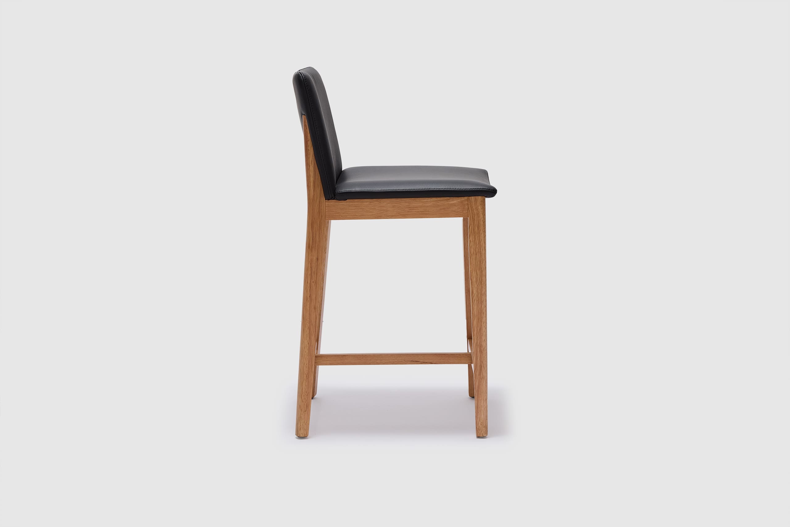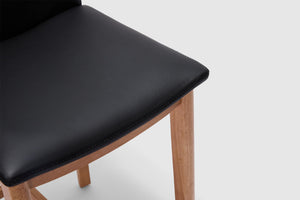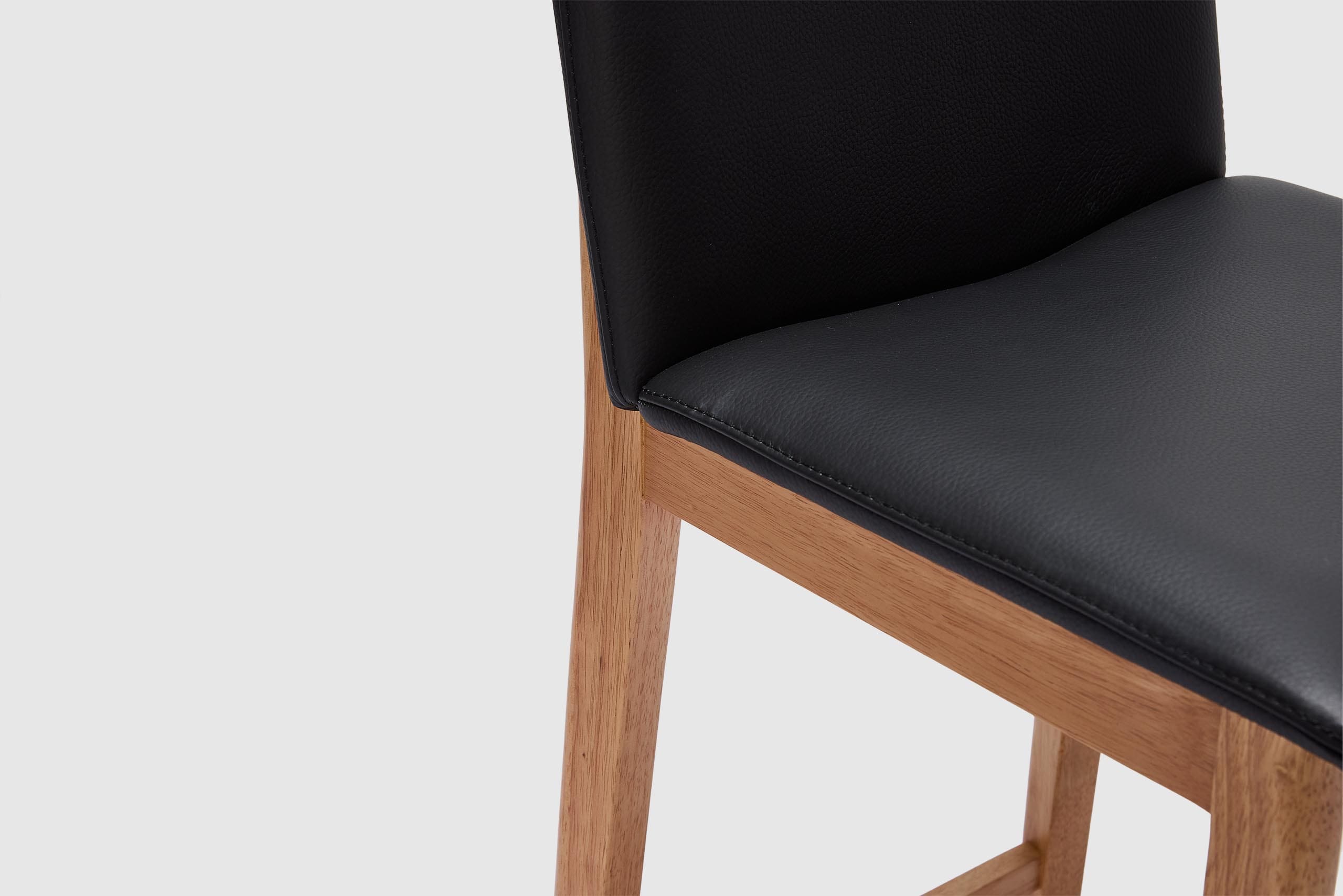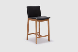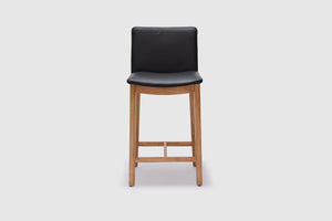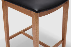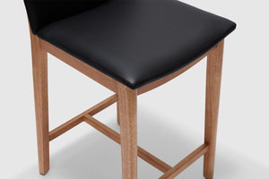 A modern spin on a classic silhouette. The Tevez bar stool boasts clean contemporary lines and a robust solid timber frame. The comfortable seat, upholstered with prestige leather makes for an understated piece that adds personality to any modern dining room.